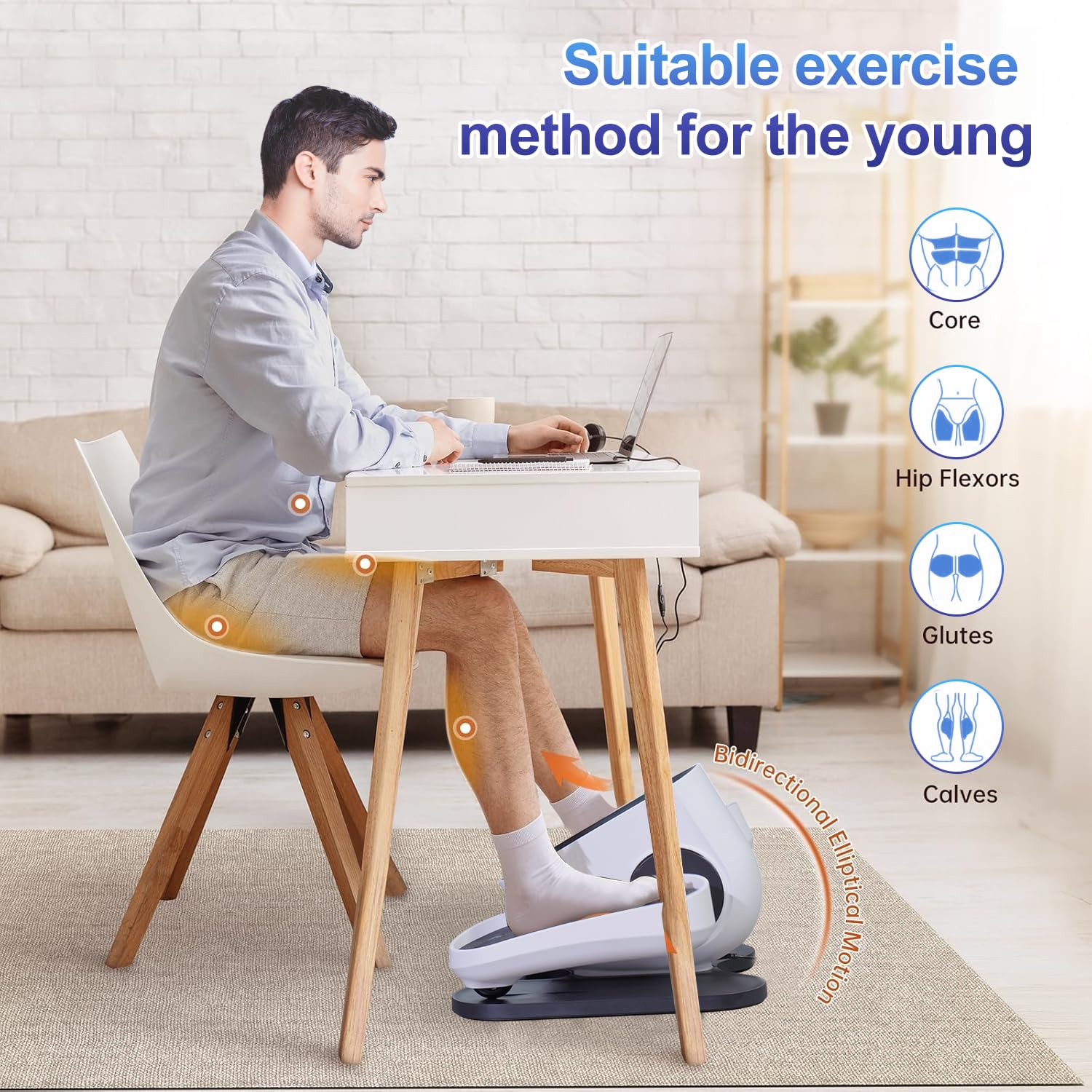 - 【Assist Machine for Leg Rehabilitation】Exercise under the desk elliptical is especially suitable for the elderly and people who have leg rehabilitation. Low-intensity exercise can burn calories, improve cardiovascular health and strengthen muscles, and at the same time help the legs adapt and recover quickly.