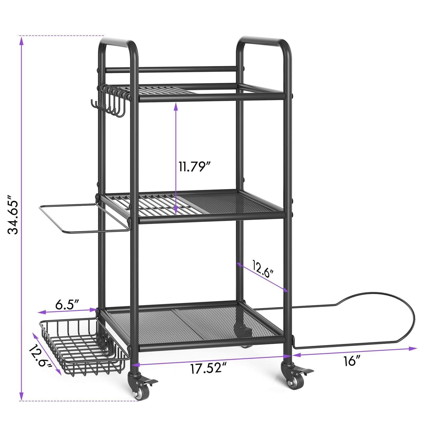 - [Versatile Home Gym Storage Solution] This versatile gym storage rack features 3 storage shelf, 3 layers of metal mesh, a side basket, 3-sectional iron holder and several hanging hooks to store your different sizes of yoga mats and fitness accessories and make your room tidy and beautiful, making it an ideal workout equipment organizer.