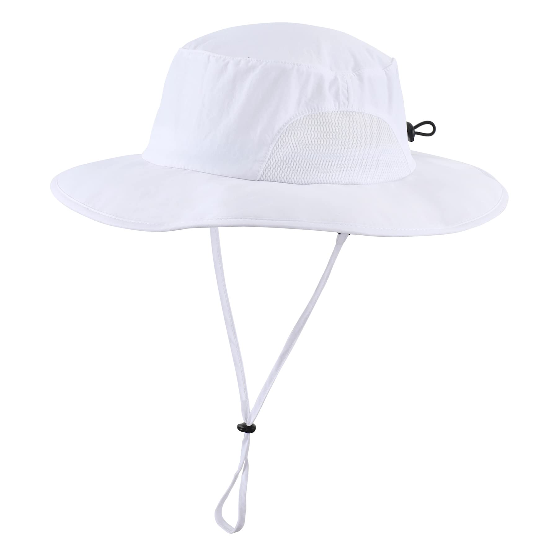 Home Prefer UPF50+ Mens Sun Hat Wide Brim Fishing Hat Airy Mesh UV Protection Portable Bucket Sun Hat White