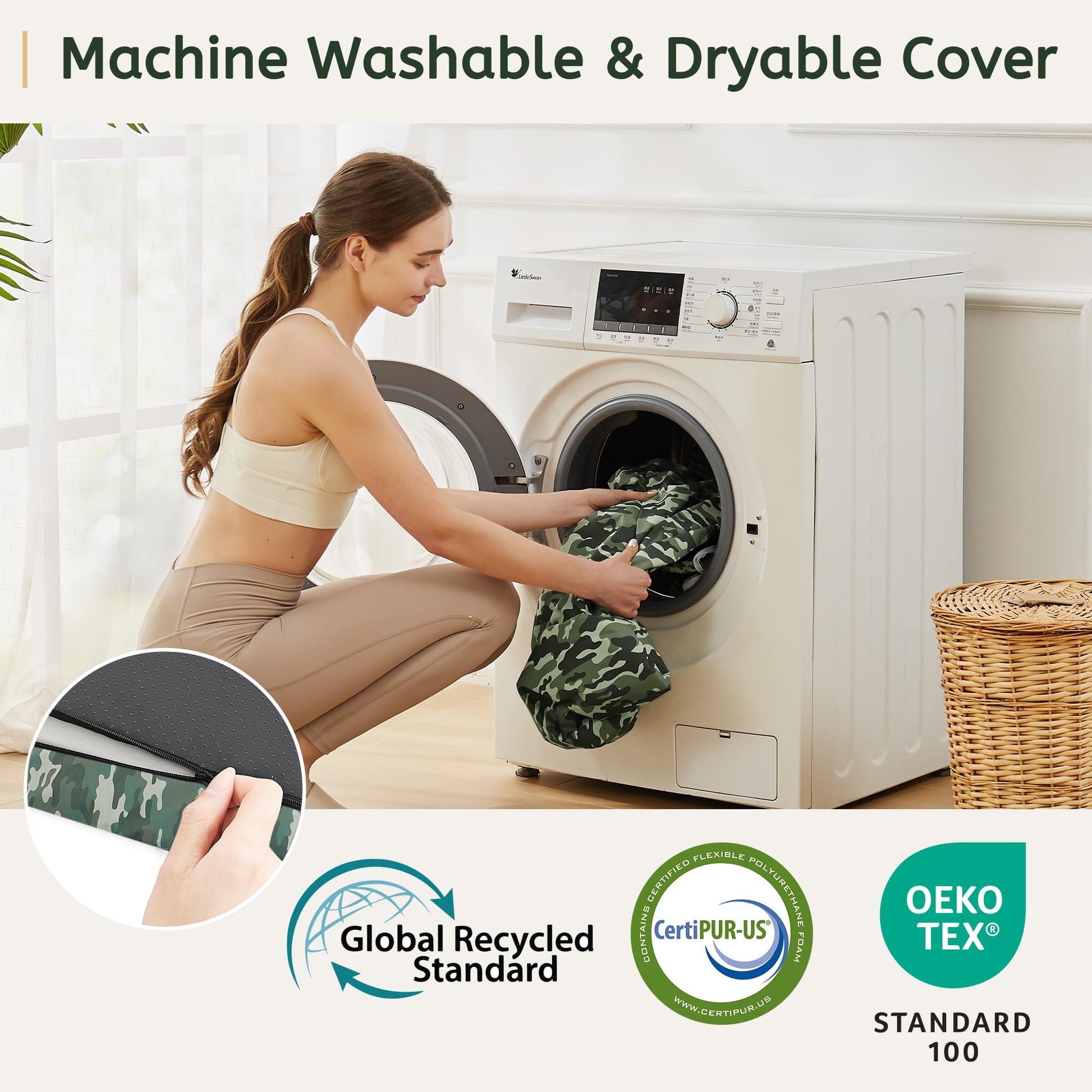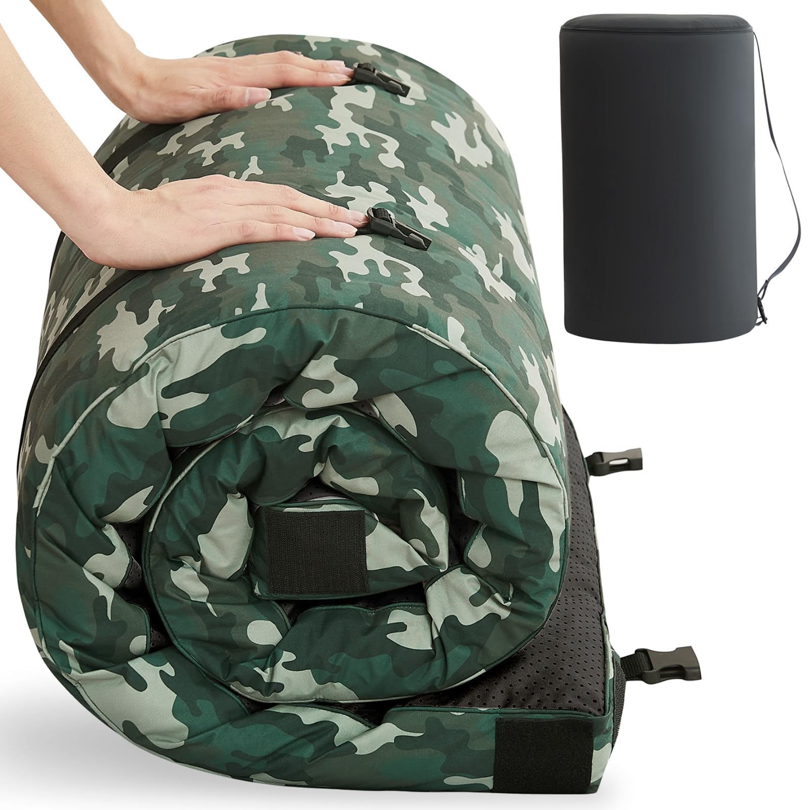HomeMate CertiPUR-US Memory Foam Camping Mattress Pad Portable Roll Up Mattress for Adults Sleeping Mat Cot Mattress Pad Car Tent Floor Mattress Removable Waterproof Cover Travel Bag Guest Bed