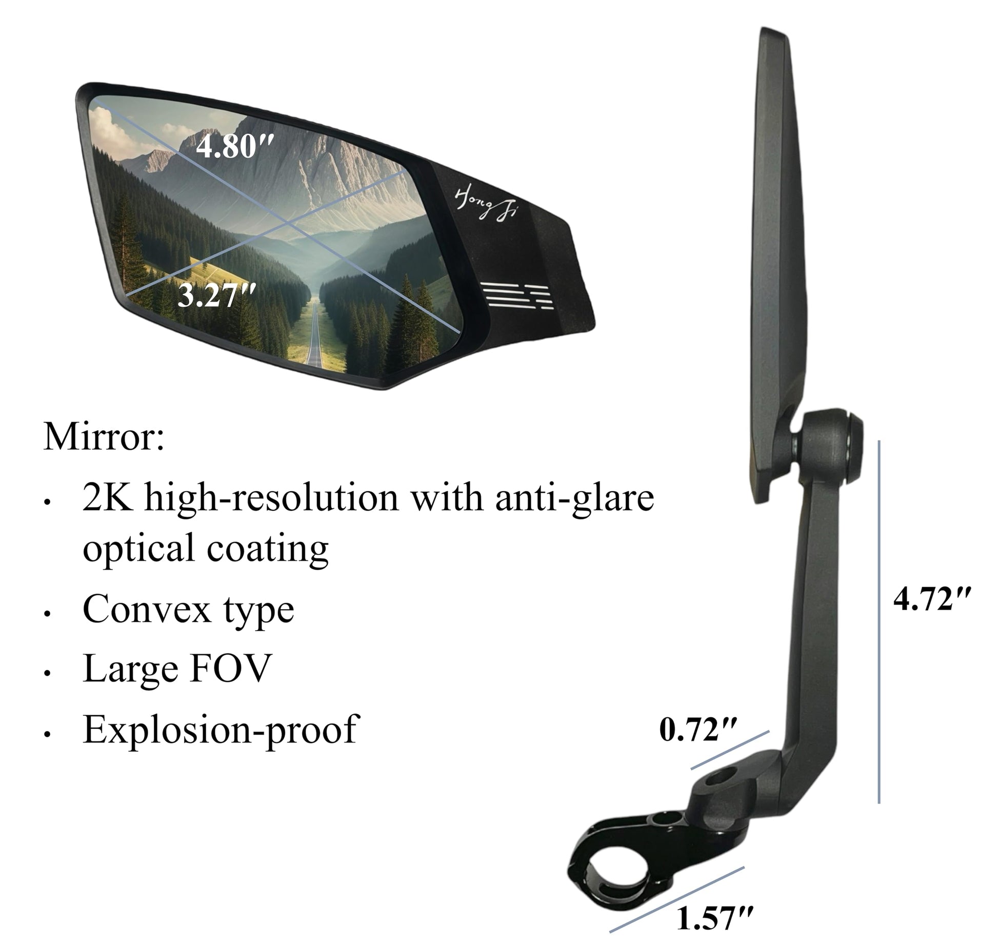 - 2K High-Resolution Mirror-Equipped with advanced 2K high-resolution optics, this mirror delivers a remarkably clear and detailed rear view, ensuring you stay fully aware of your surroundings. The high-definition quality enhances visibility, allowing you to see approaching vehicles, obstacles, and other cyclists with precision, even from a distance.