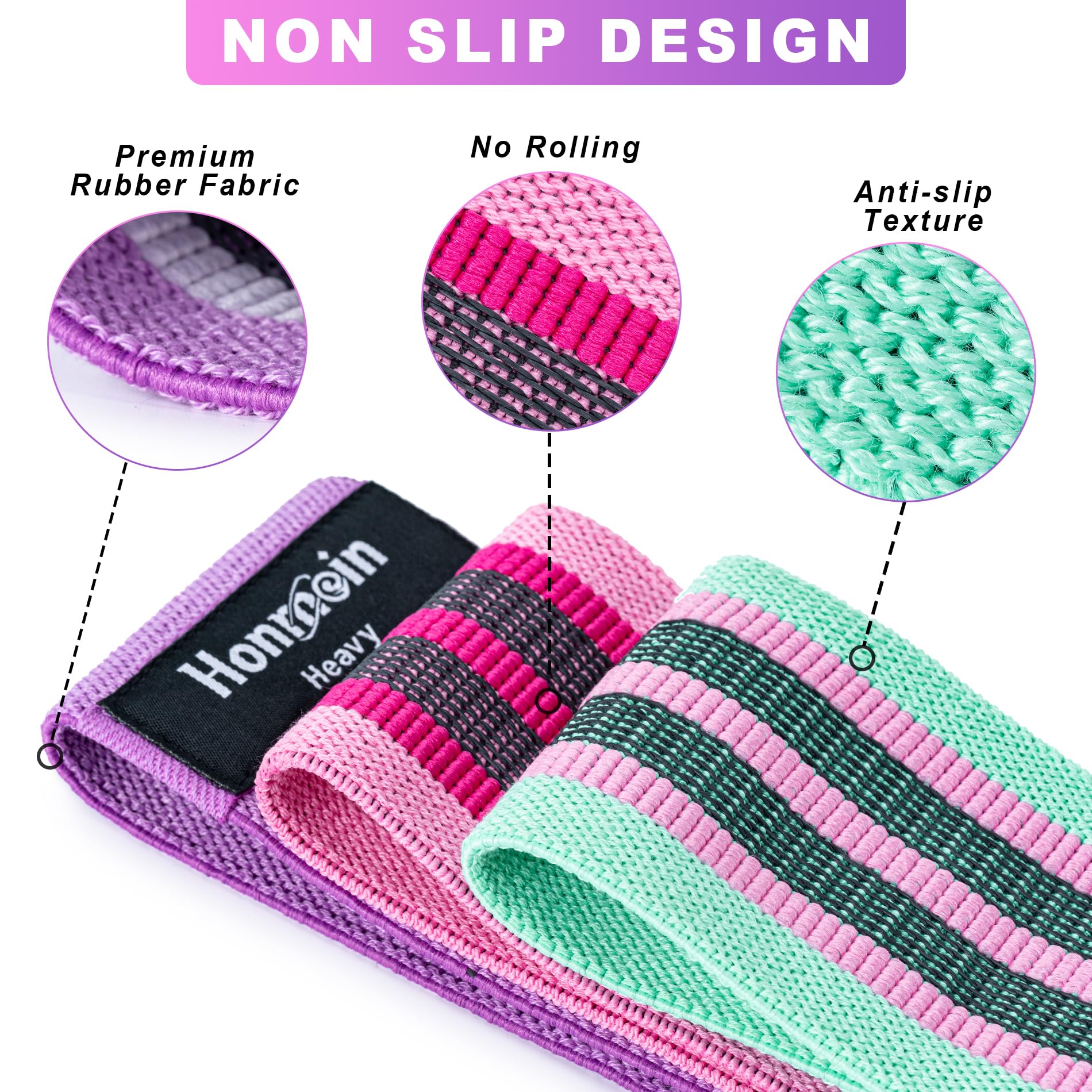 Honmein Resistance Bands for Working Out, 3 Levels Exercise Bands Workout Bands Set for Women Men, Hip Legs Booty Bands for Home Fitness, Gym, Yoga, Pilates (Assorted)