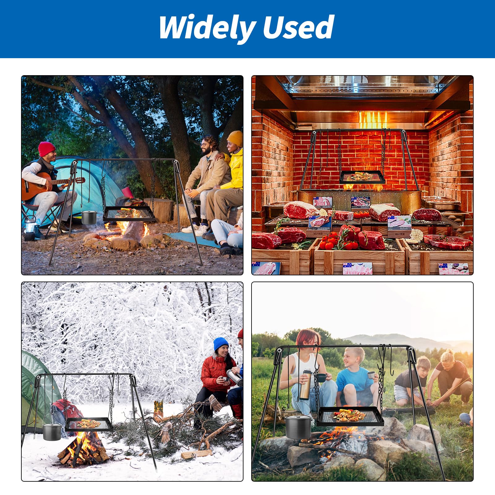 - [Size]-The size of the campfire is 37 X 34inches/ 94 X 88cm, the grill grate size is 16 X 11.2inches/ 40.5 X 28.5. There are longer rods available for hanging, allowing you to use more cooking utensils at the same time, improving efficiency and freeing up your hands.