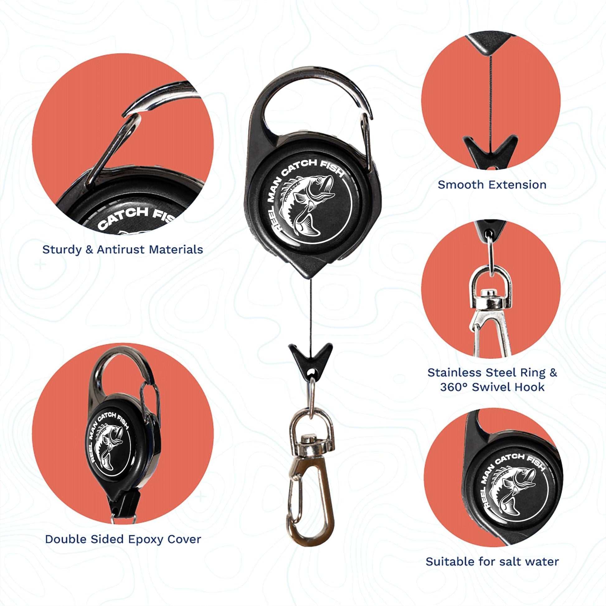 - Suitable for Saltwater: The retractable lanyard features a built-in stainless steel clip and can be used in both saltwater and freshwater. It also features an anti-rust and corrosion-resistant coating and is suitable for use in all weather conditions
