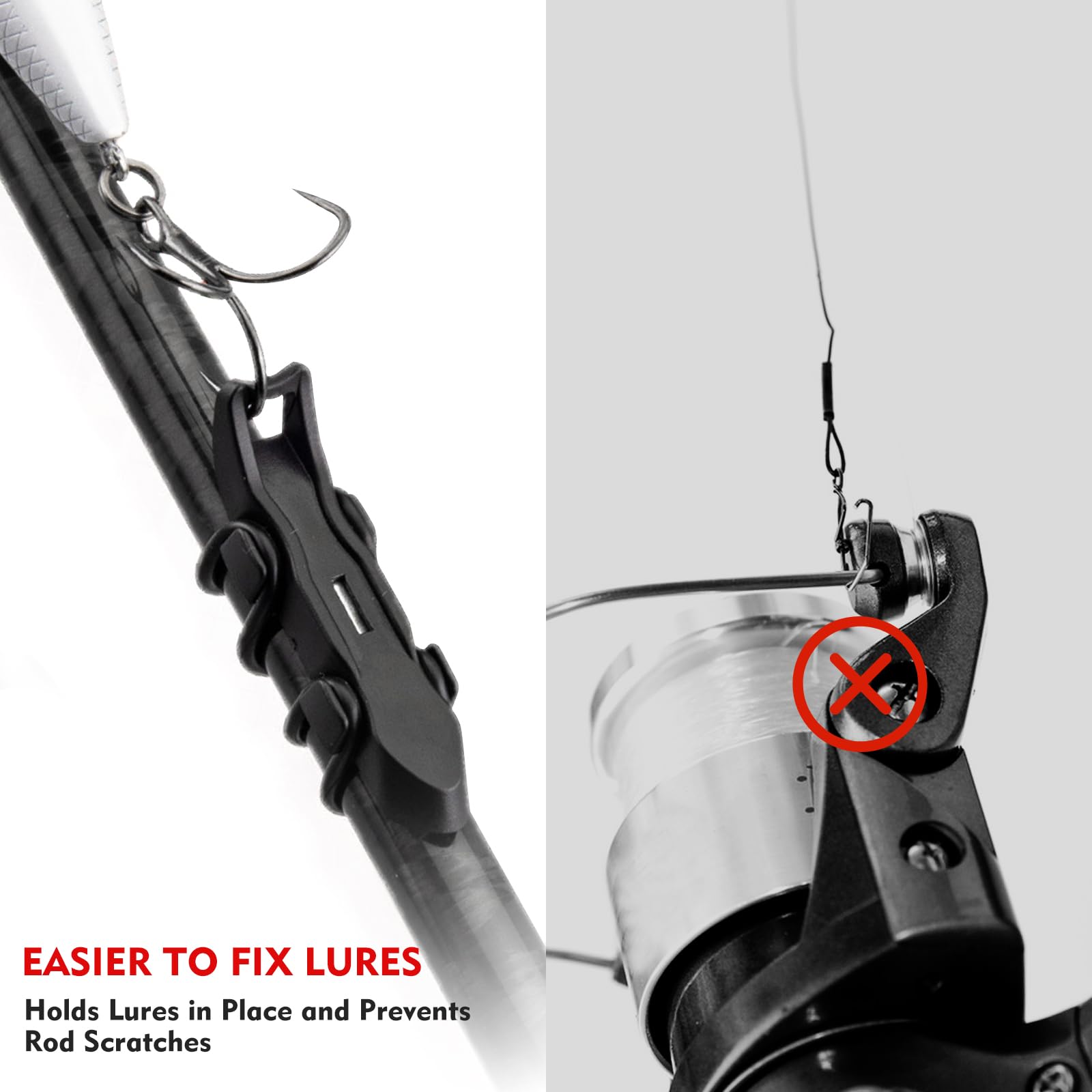 - CONVENIENT AND QUICK: Holds the bait quickly and prevents line tangling while avoiding scratching the rod or cork handle.