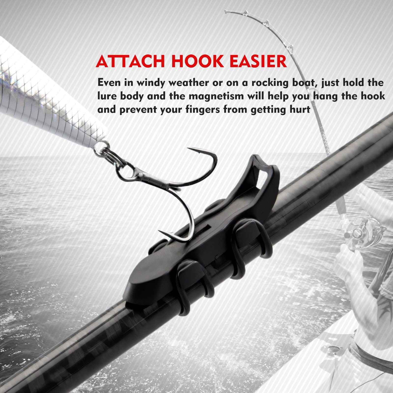 - MAGNETIC HOOK KEEPER: Protect yourself from accidental injury by holding the bait in your hand and close to the hook retainer when hanging the bait.