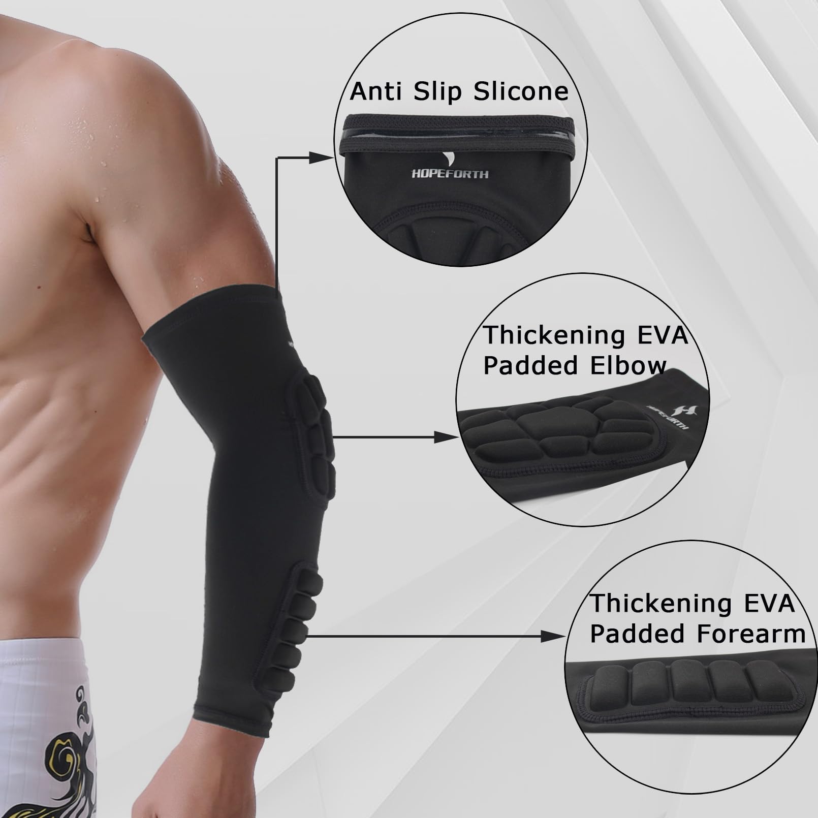 HOPEFORTH 2PCS Padded Elbow Forearm Sleeves Compression Arm Protective Support