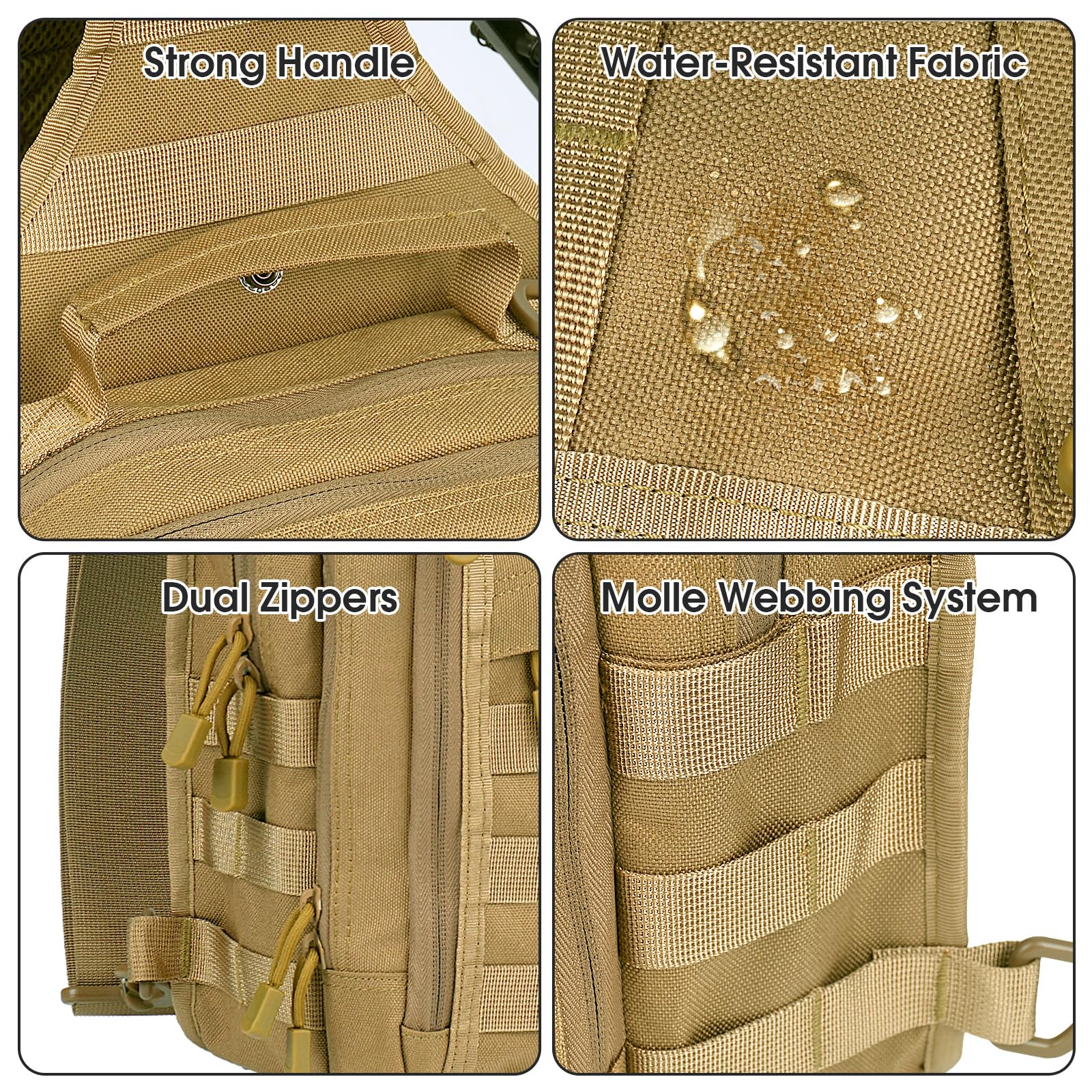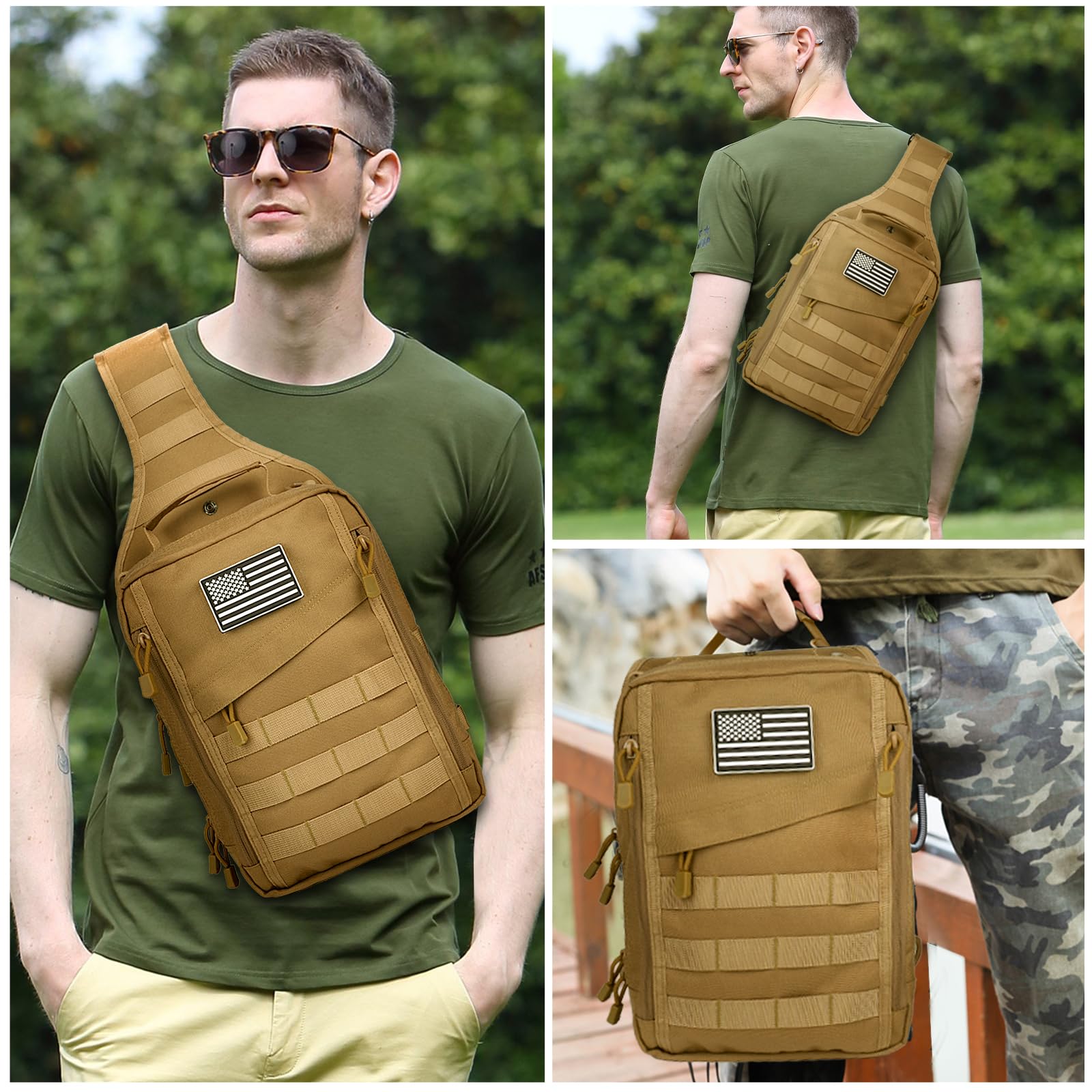 hopopower Tactical Sling Bag for Men Military Shoulder Backpack Range Bag Sport Fishing Bag Pack Small Utility Backpack Crossbody Chest Bag for Every Day Carry, Khaki