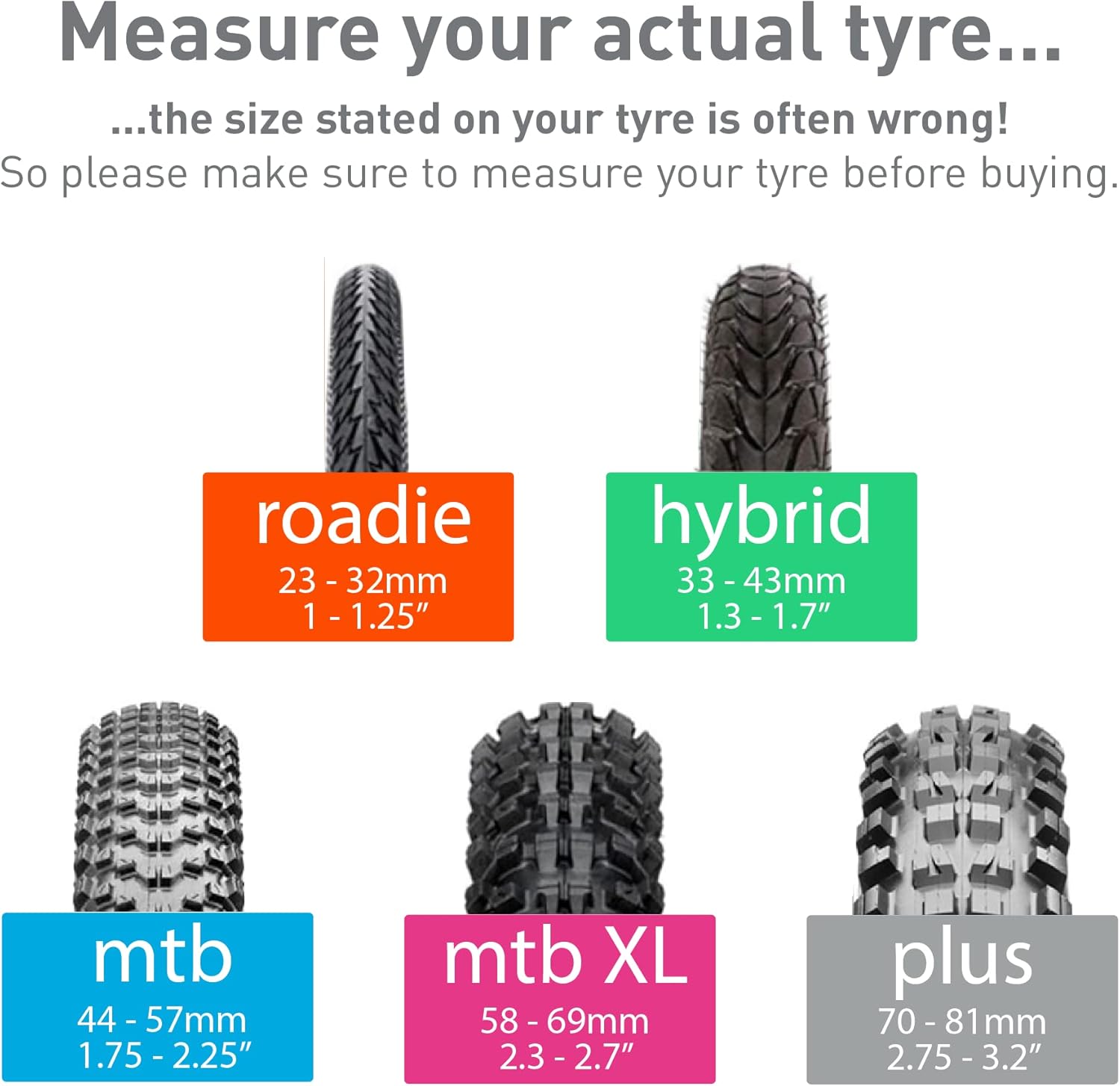 - Available in five sizes to fit most bikes. Size ranges are based on tire width. Make sure to order the correct size for your tires. If the CLUG is too big, your bike may slip out of it. Too small, and your bike won't fit.