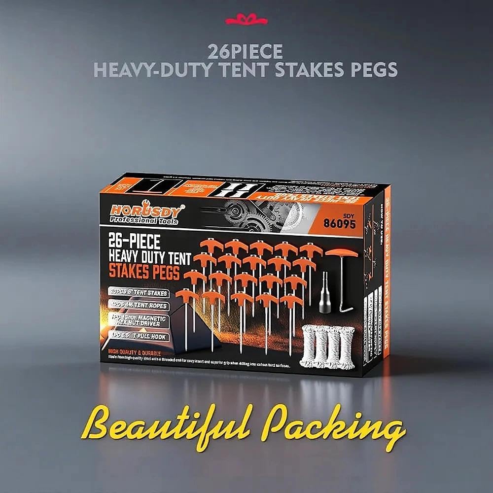 - 3. Our set comes with a bonus of 4 13ft ropes, a T pull hook and a 13mm hex nut driver, making it easy to set up your tent in no time.