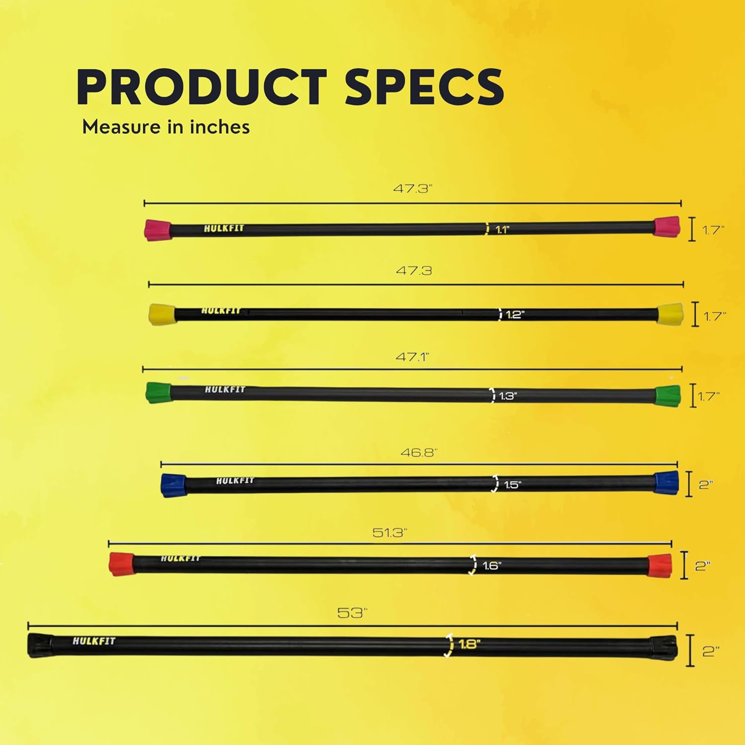 HulkFit Total Body Workout Weighted Exercise Bar Exercise Equipment for Mobility and Strength Training Squats, Lunges, Bench Press, and Deadlifts - Multiple Weights and Multicolor