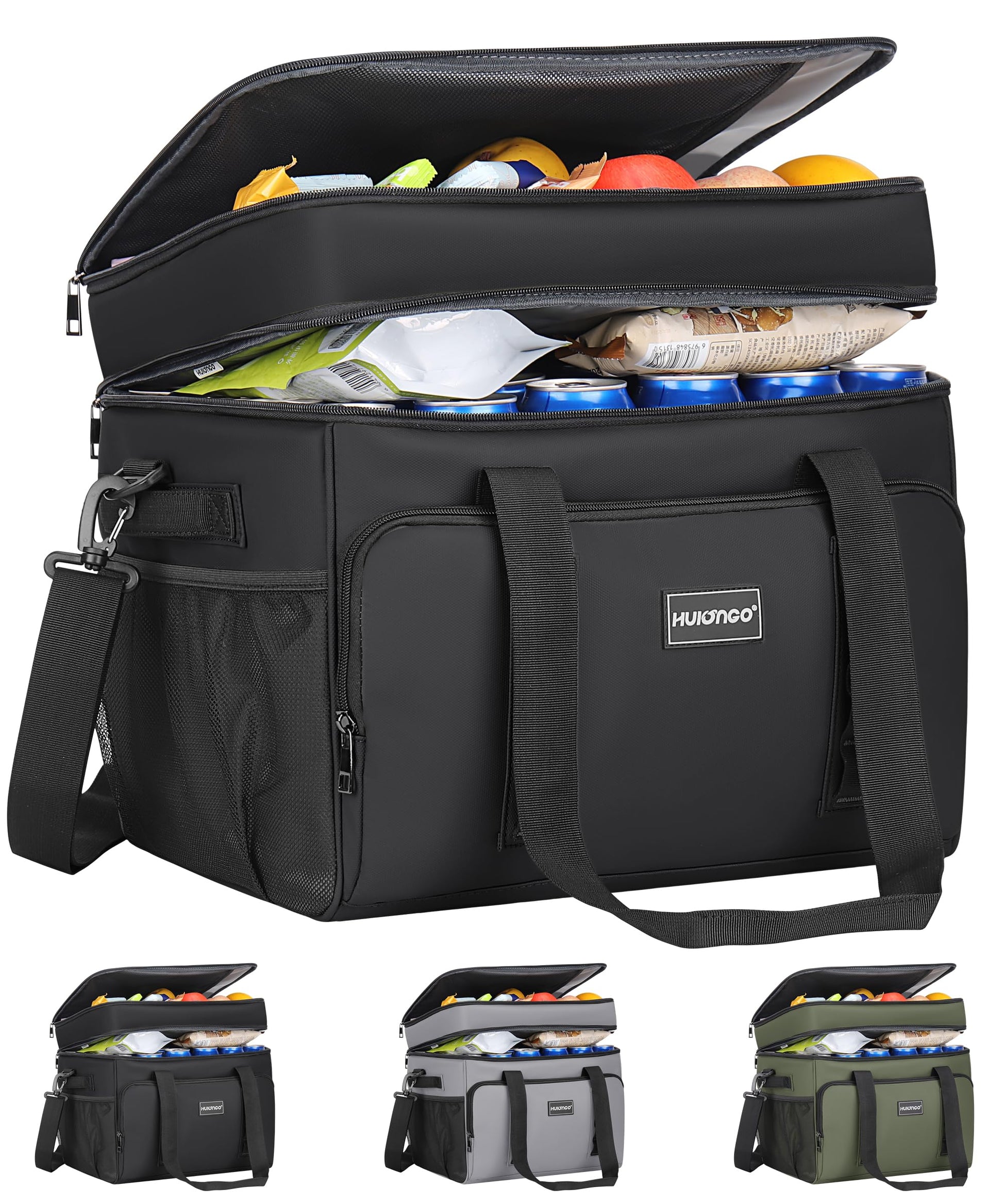 Hulongo Insulated Soft Cooler Bag, Large Ice Coolers Soft Sided Ice Chest for Beach, Camping, Car, Collapsible and Portable, 42L, 60Cans, Black