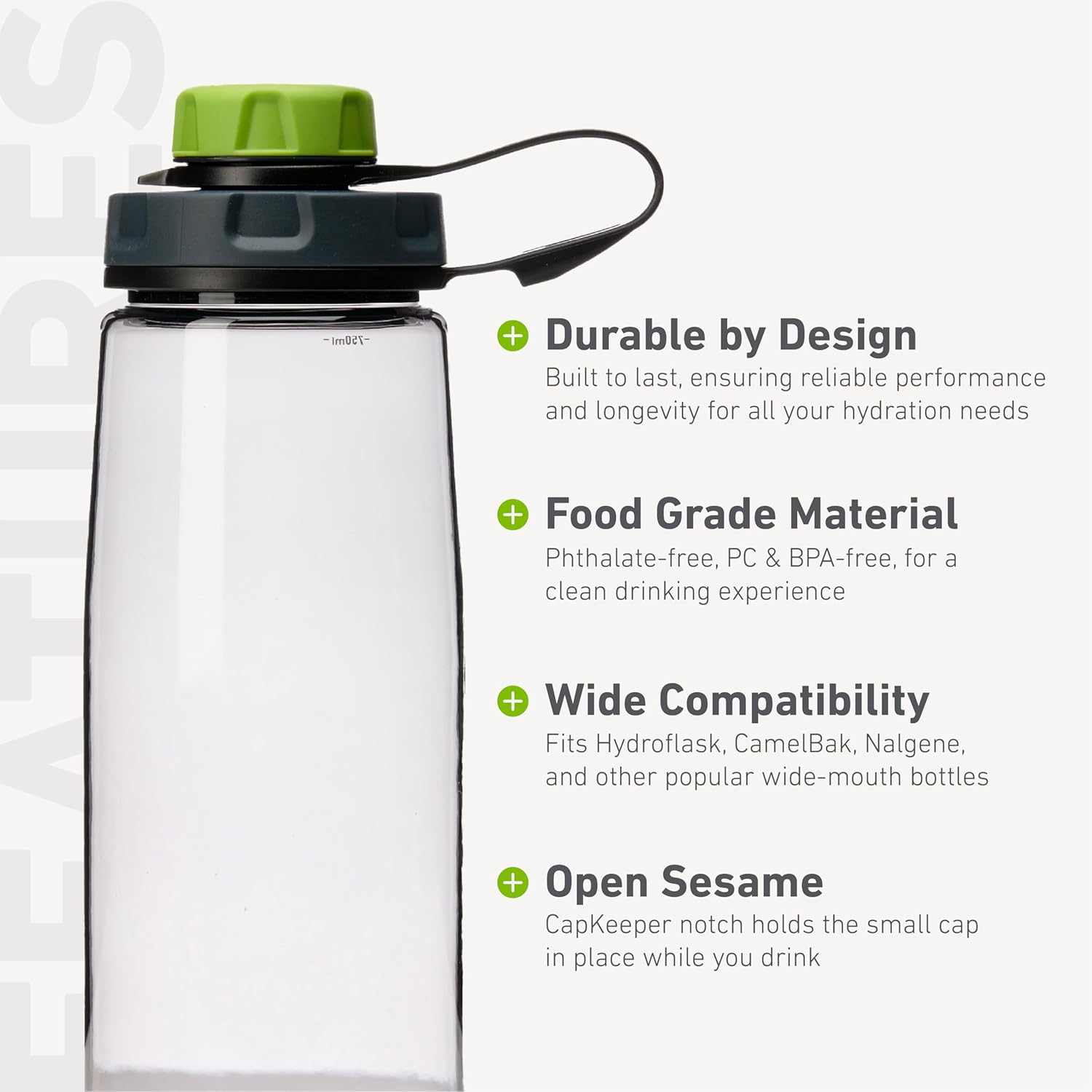 humangear capCAP+ | Converts Wide-Mouth Openings | Secure Easy Open | Food-Safe Material | Water Bottle Accessory Lid