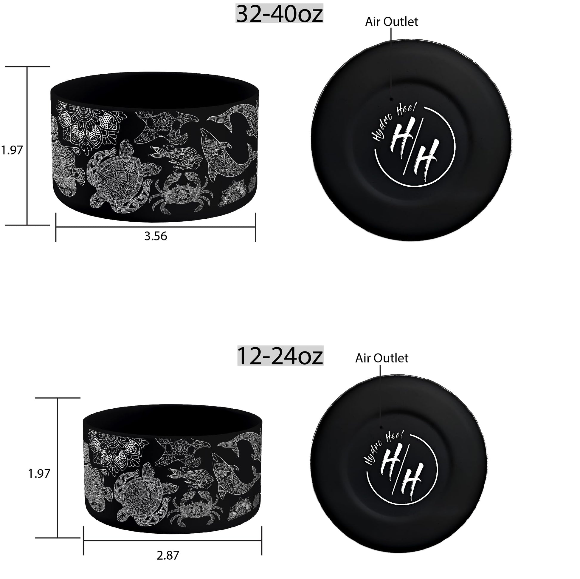 Hydro Heel Protective Silicone Bottom Sleeve, 12oz-40oz. Fits All Vacuum Insulated Stainless Steel Water Bottles, Anti-Slip, Anti-Scratch, Rubber Flex Skin Cover (12-24oz, Black Ocean Mandala)