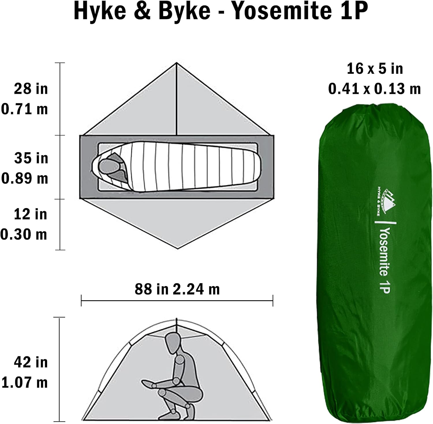 Hyke & Byke Yosemite Hiking & Backpacking Tent - 3 Season Ultralight, Waterproof Tent for Camping w/Rain Fly and Footprint - 2 Person - Lime Green