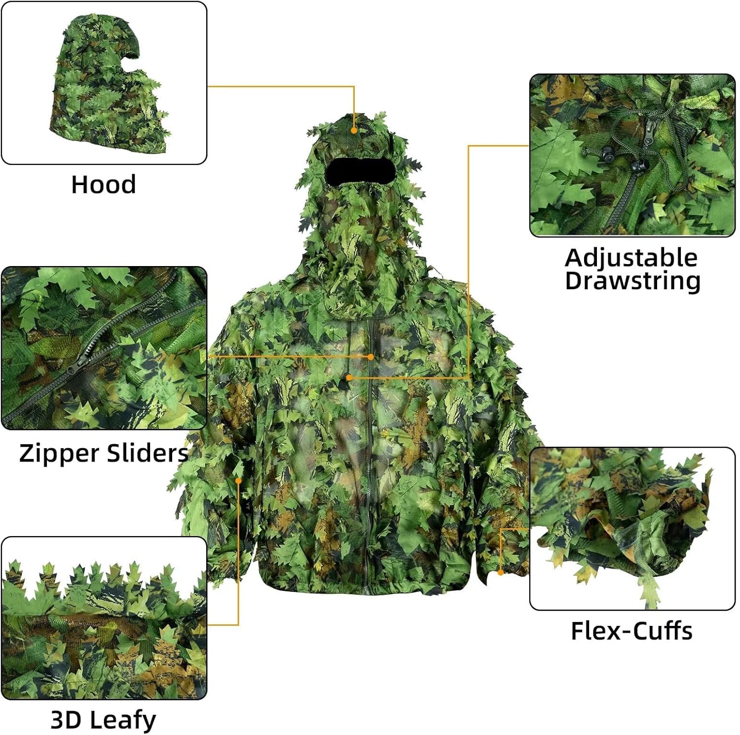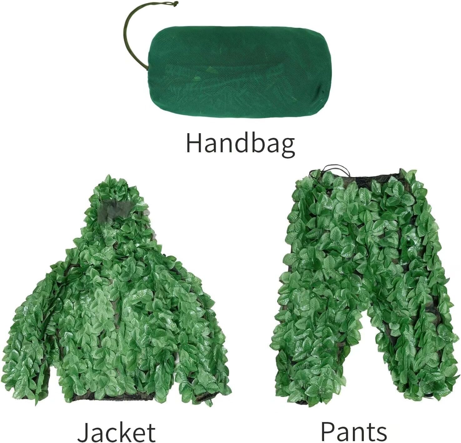 HYOUT Hooded Ghillie Suit Camo Suit Woodland Forest Military 3D Green Leafy Clothing Costume for Jungle Halloween Party