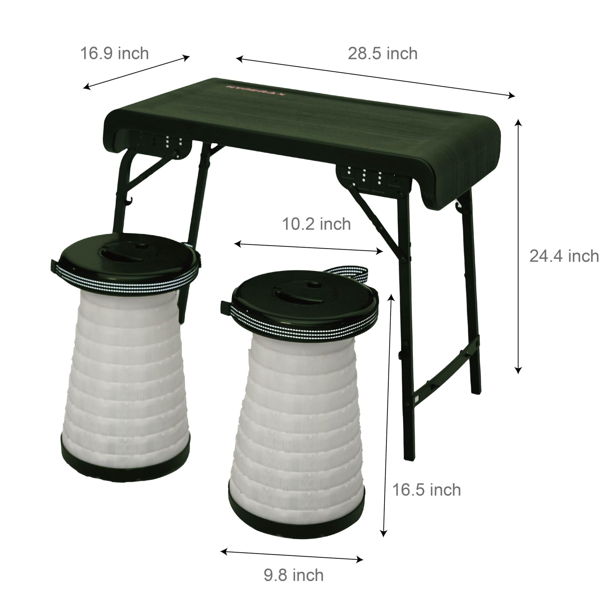 HYPERAX Camping Table & Collapsible Stool Set – Folding Table with 2 Portable Stools for Outdoor Cooking, Camping, Picnics, Beach, Boating, and Travel(Green)