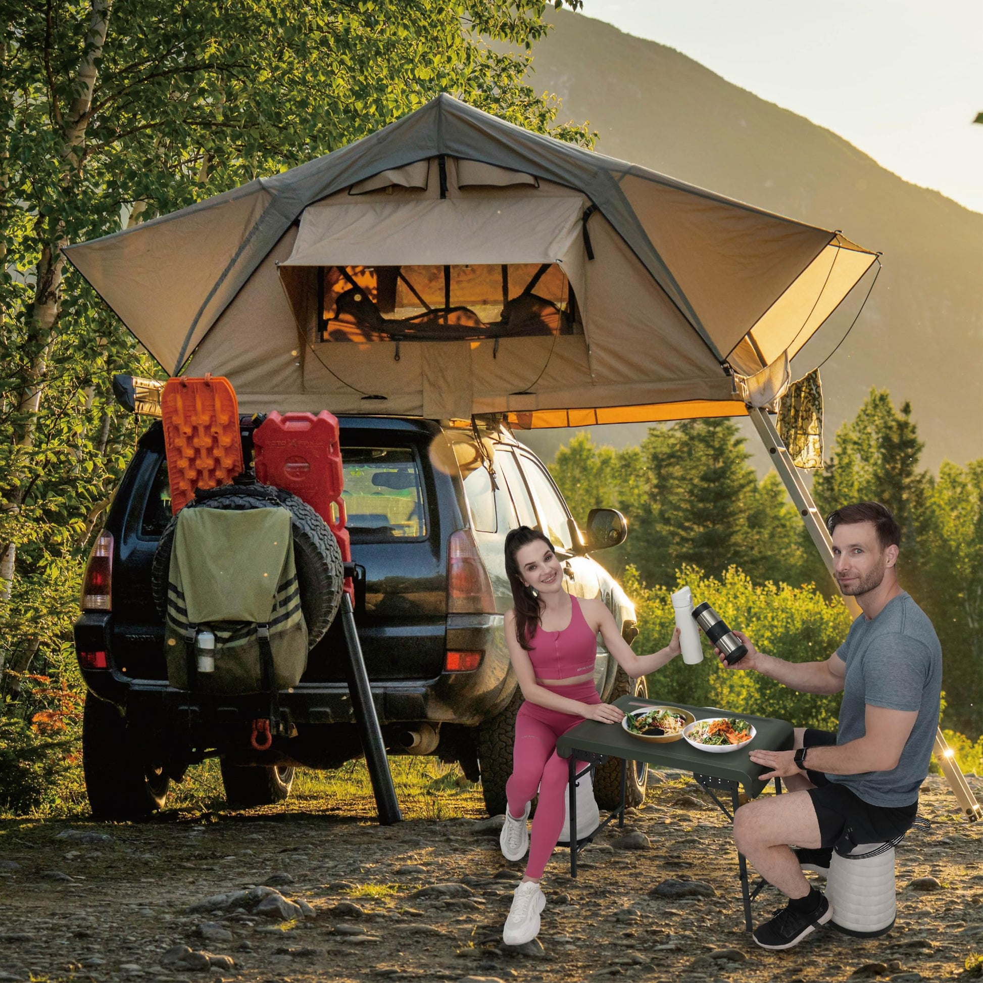 - Portable and Convenient: The HYPERAX camping table and stool set offers the perfect solution for your outdoor leisure activities. Lightweight and easy to transport, its integrated one-piece design allows for quick folding and compact storage, making it ideal for small spaces