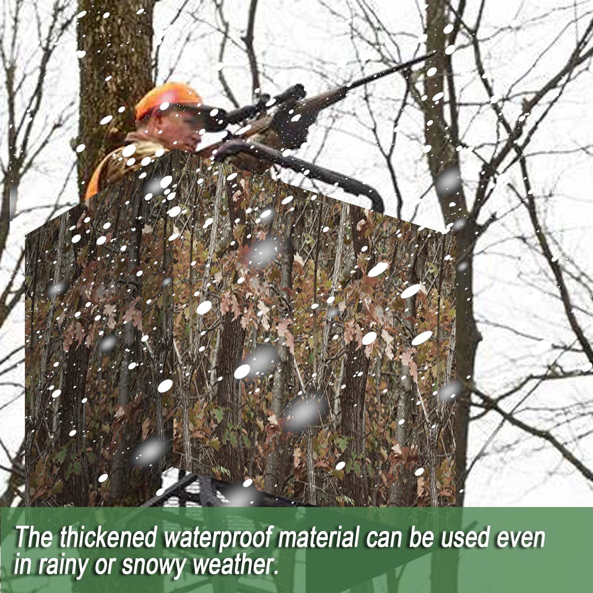 - Invisible Design: This tree stand camo blind cover is a perfect wrap around blind cover for ladder stands. The color is on point and the pattern is nice. The camo pattern is nice and matches the foilage of the areas you hunt. Allow you to stay concealed from the animals and anything else walking by.