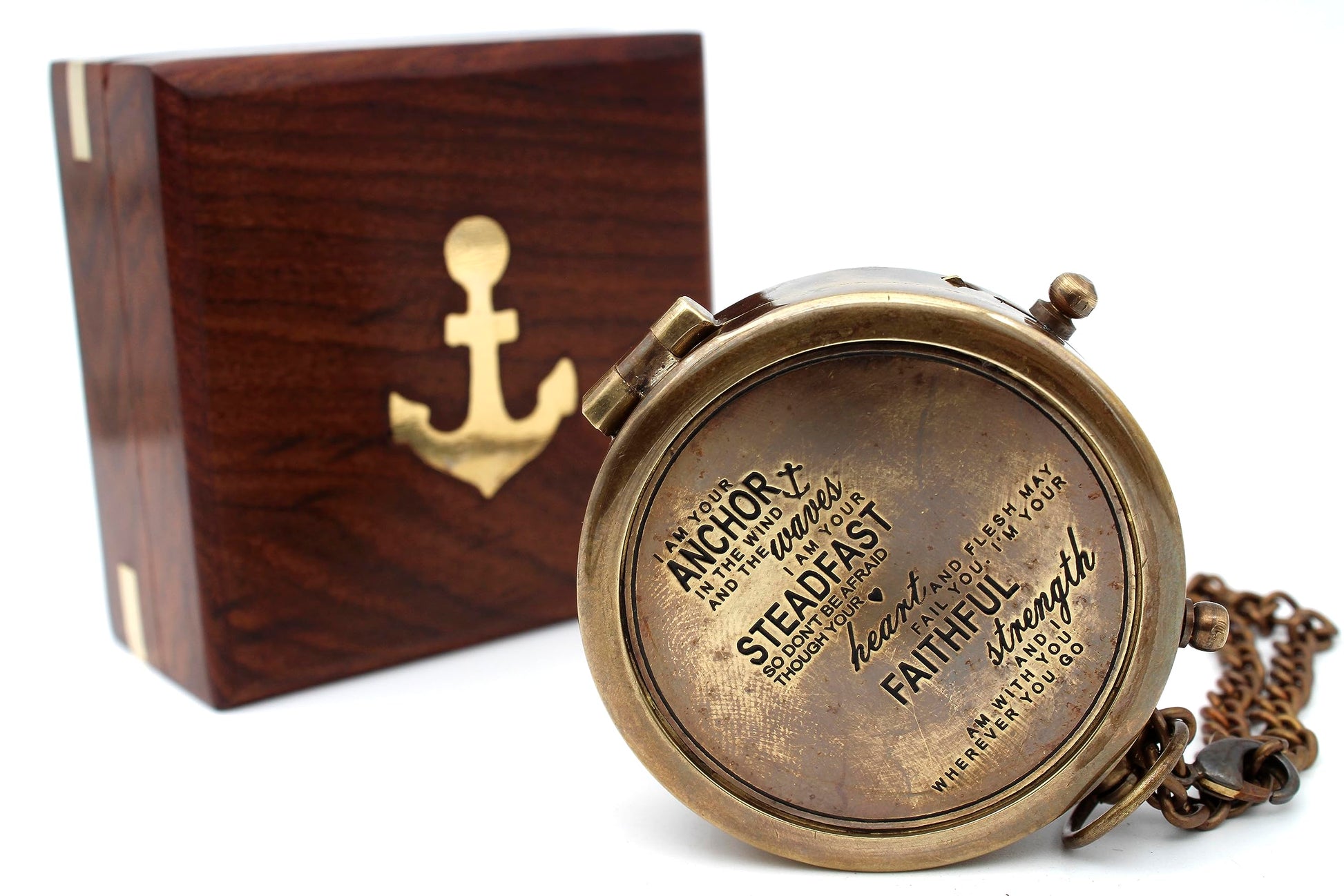 I Am Your Anchor, Faithful, Strength Engraved Compass – Son Birthday Gifts, Graduation Day Gifts, Confirmation Gifts, Baptism Gift, Stocking Stuffer for Son