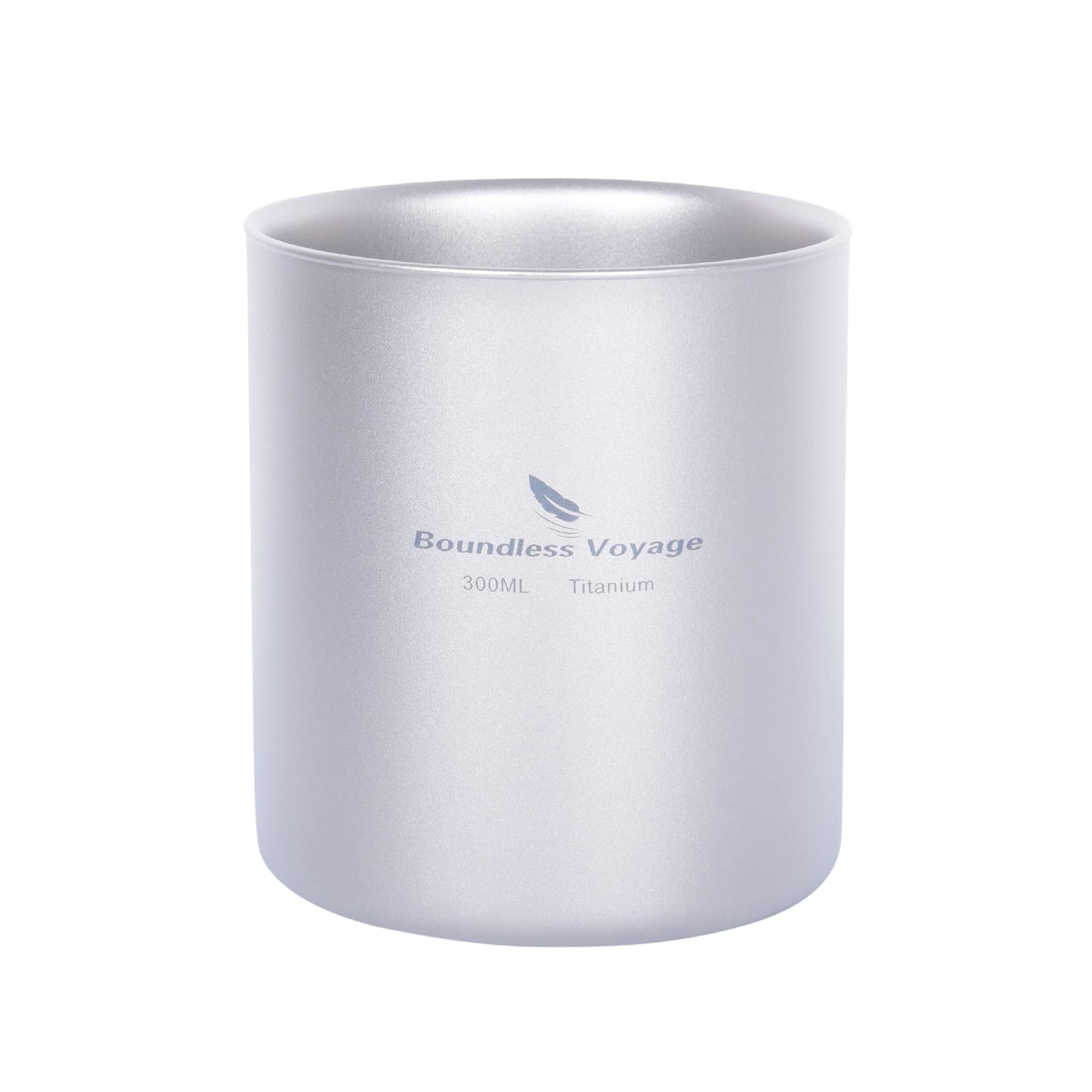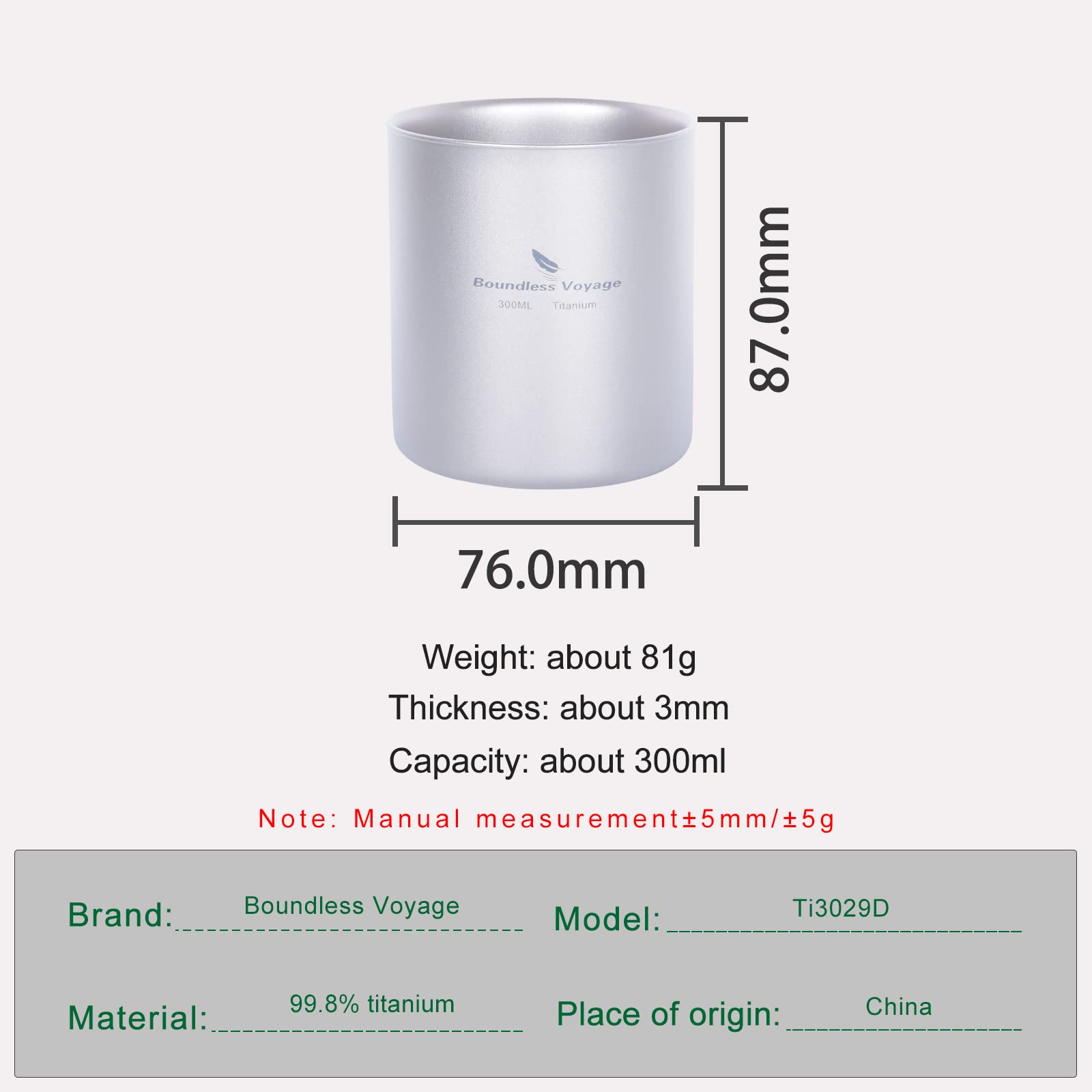 iBasingo 300ml Titanium Double-Walled Cup Ultralight Camping Tea Coffee Mug Metal Cold Hot Insulated Drinking Mug Portable Tableware for Outdoor Travel Hiking Backpacking Picnic Daily Used Ti3029D