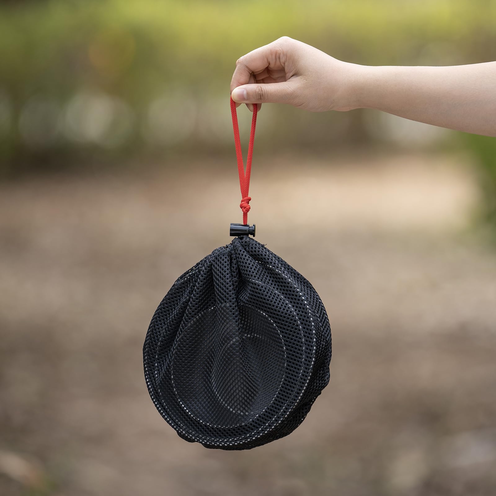 - 2 size of plates and 3 size of bowls for your choice, meet most of your dining need. These super light-weight plate can also be used as a fry pan. Take this dining essential plate anywhere and enjoy meals on the sleek plate. Comes with a mesh storage sack: It is very compact and portable.
