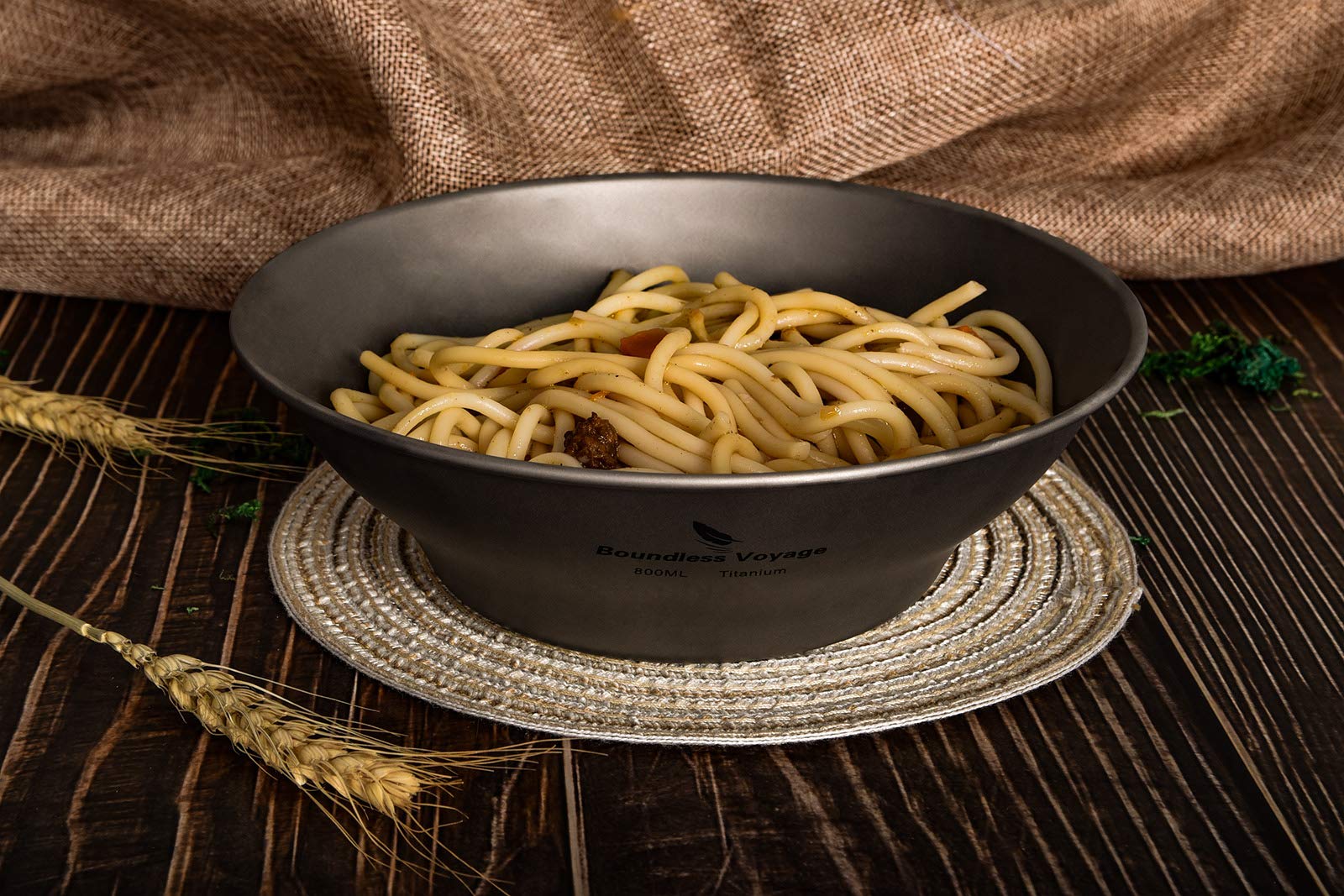 iBasingo 800ml Titanium Bowl Single-Walled Rice Salad Bowl Gym Fitness Bowl Ultralight Tableware Outdoor Camping Dinnerware Potable Stackable Kitchen Utensils with Carry Bag Ti1107T