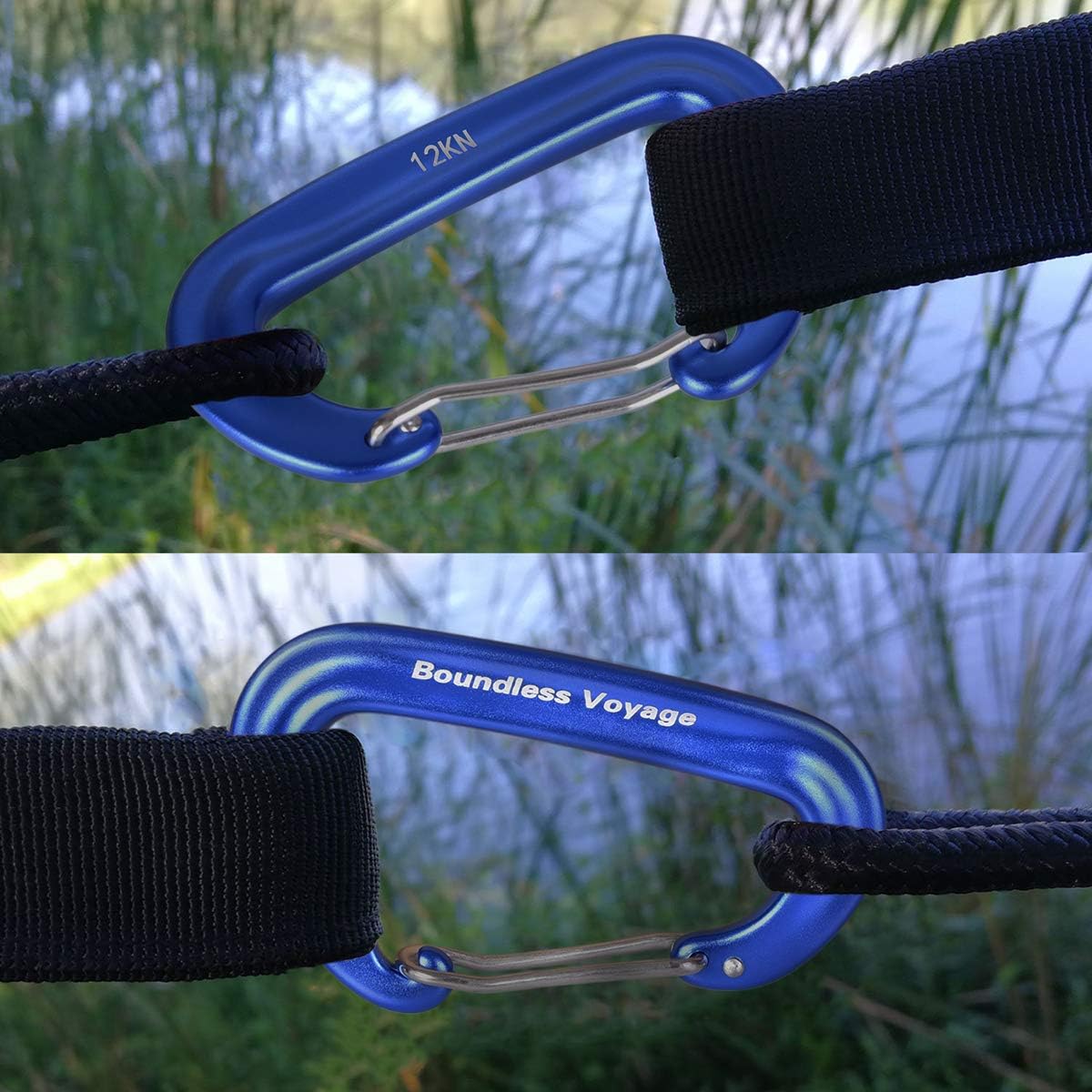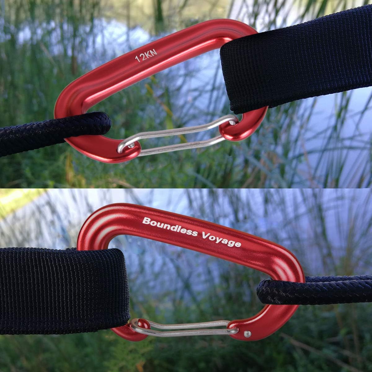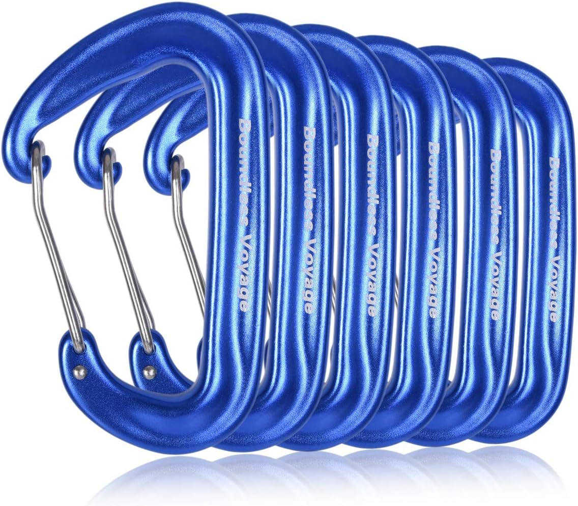 - High-quality material: The carabiner is made of high-quality, durable, lightweight and strong aluminum alloy. There is no sharp-edged wire door opening, so you no longer need to worry about puncturing, tearing or catching your belongings. The carabiner has a rated value of 12kN, high strength and durability, and can be used in a variety of environments.