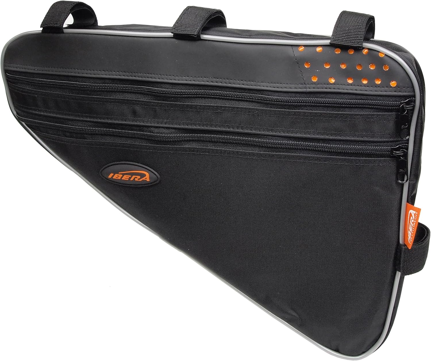 Ibera Bike Frame Bag - Slim Pouch Zipper Compartment & Velcro Mount - Water-Resistant, Fits Most Bikes - Holding Tools Snacks