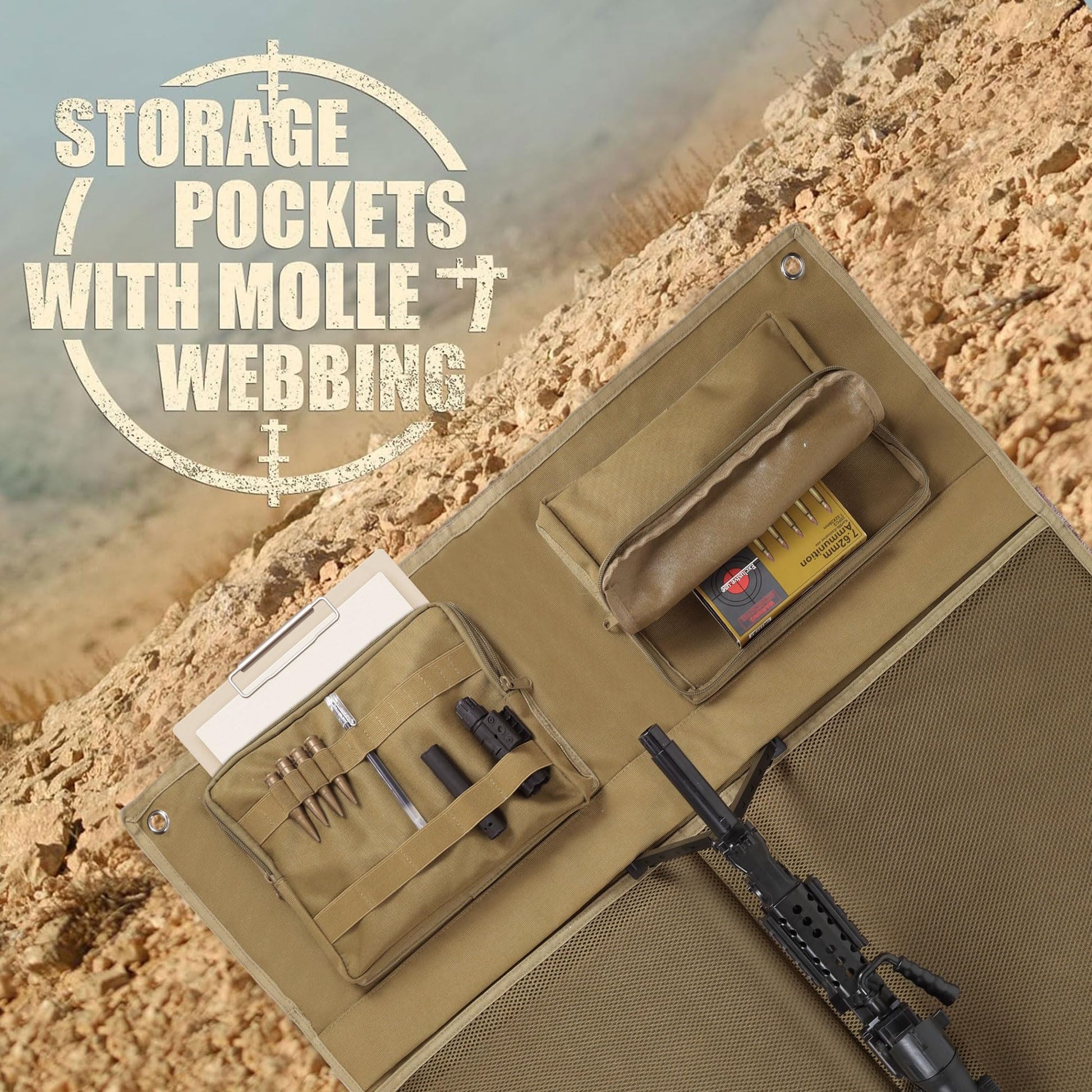 - Durable & Waterproof Design: Crafted from premium 1000D nylon with double-layer stitching, this shooting mat delivers exceptional durability and tear resistance. The ground-contact side features a waterproof coating, offering protection against dust and insulation on wet grass or gravel.