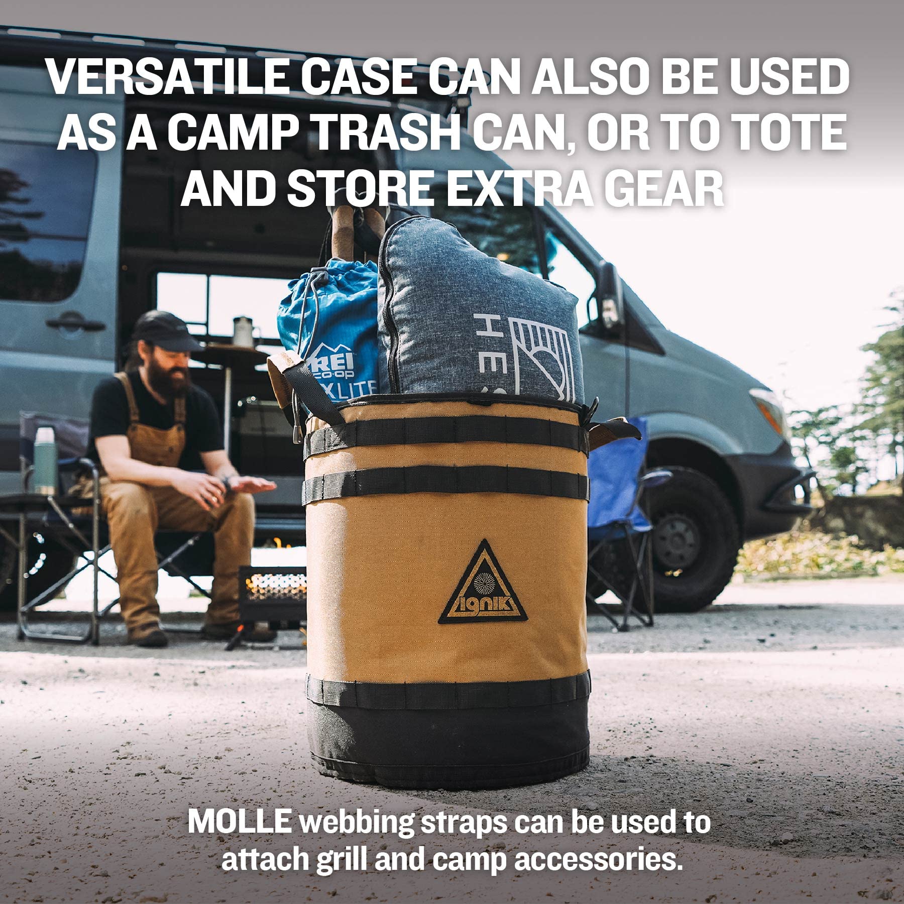 - Roomy and versatile tote can also be used as a camp trash can, for toting extra gear, or for beverage storage; features MOLLE webbing straps for attaching grill and other camp accessories