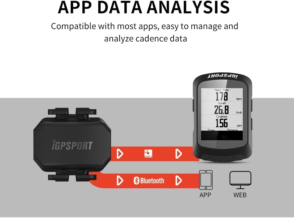 - ✔ ANT+ and Bluetooth: Compatible with Garmin,Bryton,Polar,Wahoo,iGPSPORT bike computer and more