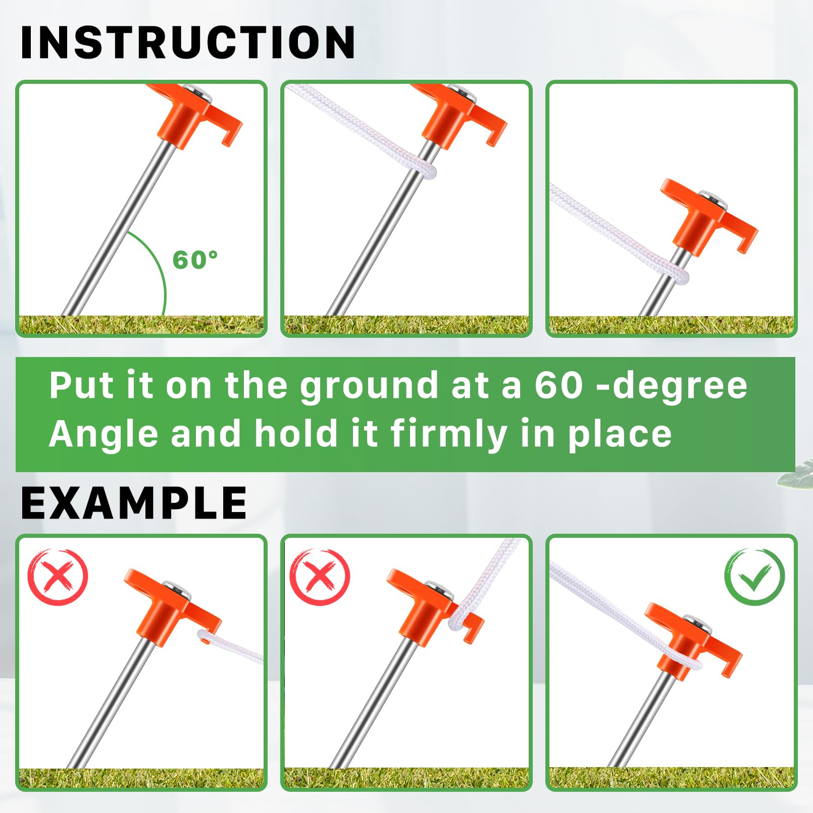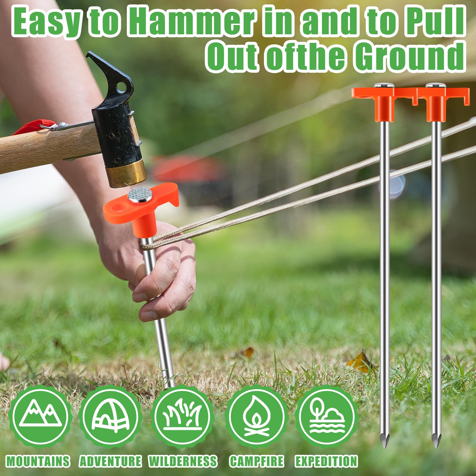 - Rich in Quantity: You will receive 20 pack heavy duty tent stakes with orange hooks, which can safely and steadily fix the tent, allowing you to get a good night's sleep every night while camping. Enough quantity to satisfy your outdoor usage and replacement needs.
