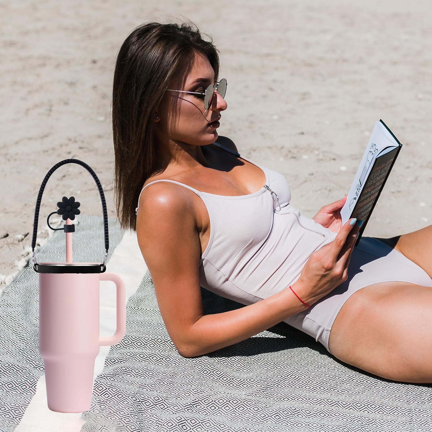 - Convenient and Versatile: The Water Bottle Handle and decorative straw cap make carrying your water bottle effortless. Perfect for walking, exercising, camping, and other outdoor activities, these accessories not only enhance convenience but also keep dust and foreign objects out of your drinks with their elastic straw tip lids while adding a cute touch to your bottle.