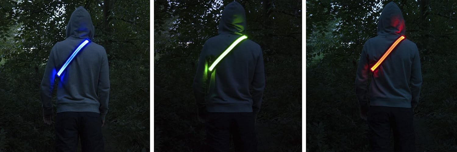 - USB RECHARGEABLE WITH NO BATTERIES TO REPLACE EVER - Charge it and go. This LED sash is rechargeable (up to 20 hours on a single charge) and comes with a micro USB cable. Made from durable and breathable materials that will last you a lifetime. Our LED sash will keep you safe in all kinds of outdoor activities: walking, running, jogging, cycling, biking, motorcycling, skateboarding, skiing, snowboarding, horse riding, dog walking, construction, law enforcement and airport personnel etc