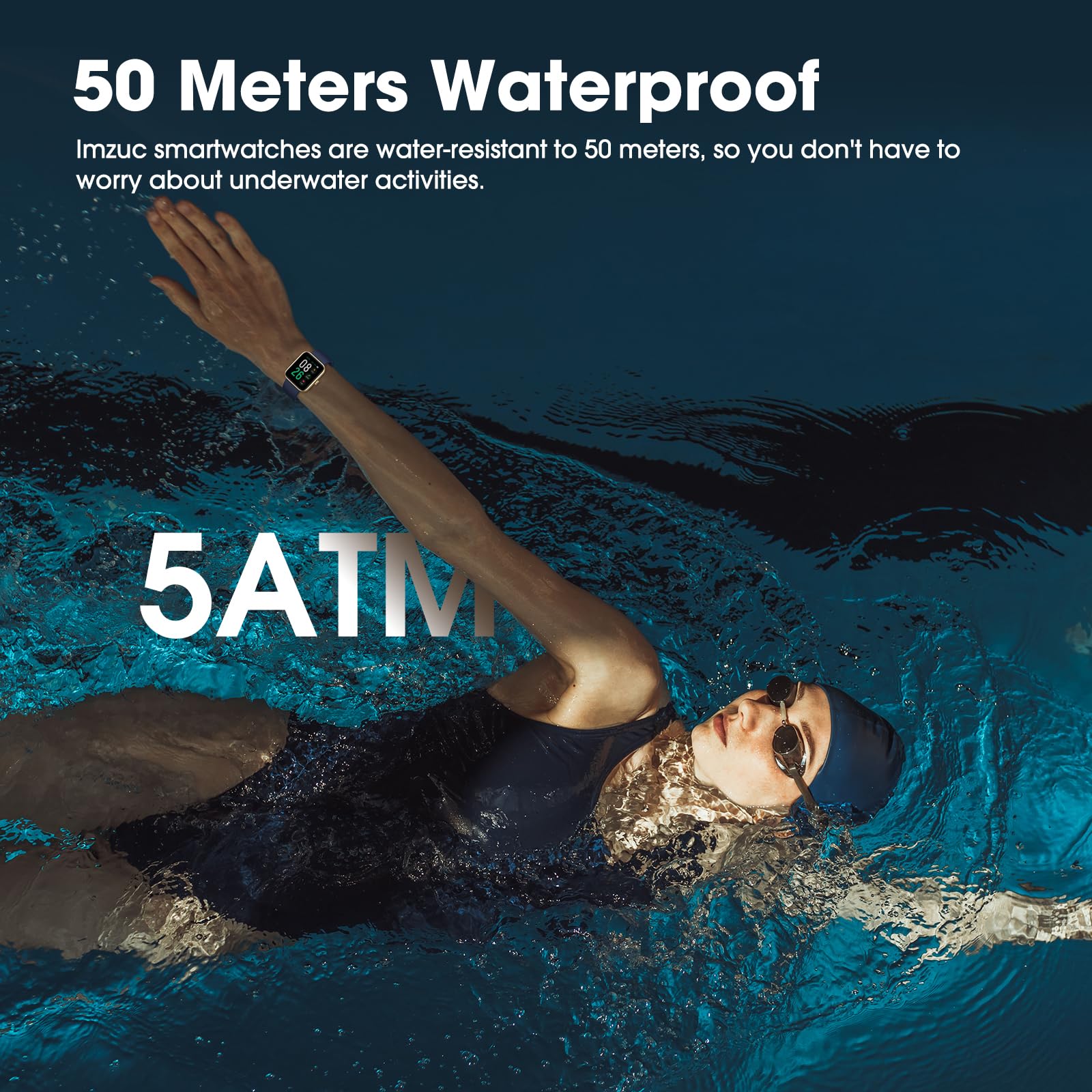 Imzuc Smart Watch for Women Men, Fitness Tracker Watch with Heart Rate Monitor, Sleep, 5ATM Waterproof Smartwatch Sports Watch Compatible with Android iOS Phones Step Calories Counter