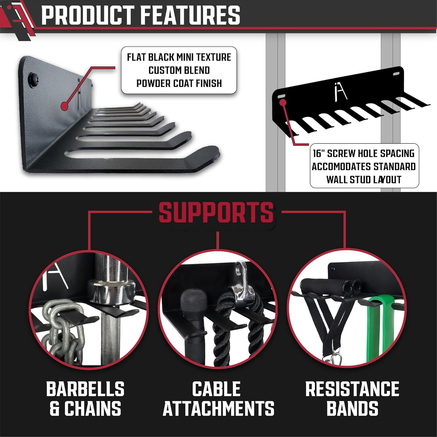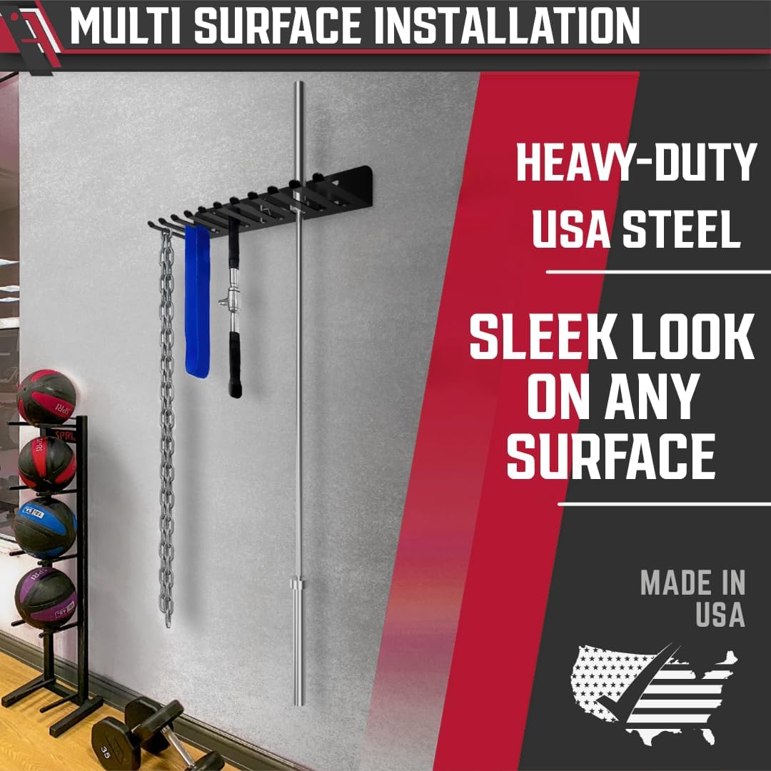 - Multi-Purpose Home Gym Storage Hook Organizer: Use this gym accessory and barbell storage hanger for storing workout equipment - resistance bands, jump ropes, lifting belts, dip belts, agility bands, foam rollers, wrist wraps, curl bars, gym chains, and more hang precisely on our carefully designed hooks created to improve your wall organization.