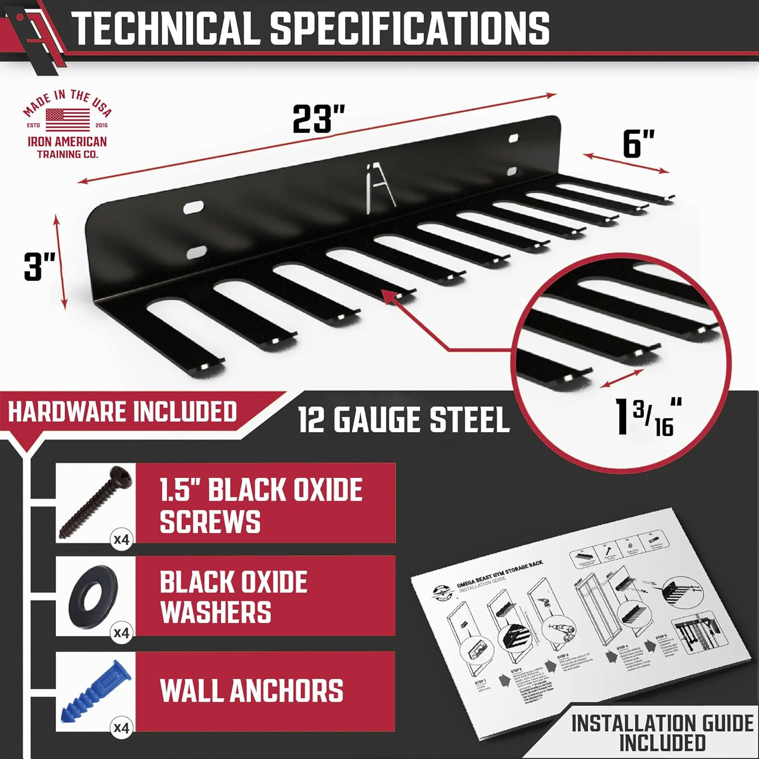 - Buy with Confidence: Our custom-designed, mounted home gym organizer has stood the test of time - our racks are made from high-quality USA steel; all our fitness equipment storage racks are backed by the IRON AMERICAN Promise and 24/7 USA-based customer support.