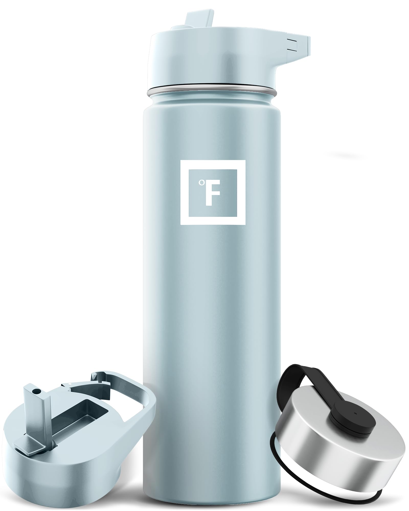 IRON °FLASK Camping & Hiking Hydration Flask with 3 Lids - Stainless Steel, Double Walled & Vacuum Insulated Water Bottle - Leak Proof & BPA Free (Morning Mist, Straw - 22 oz)