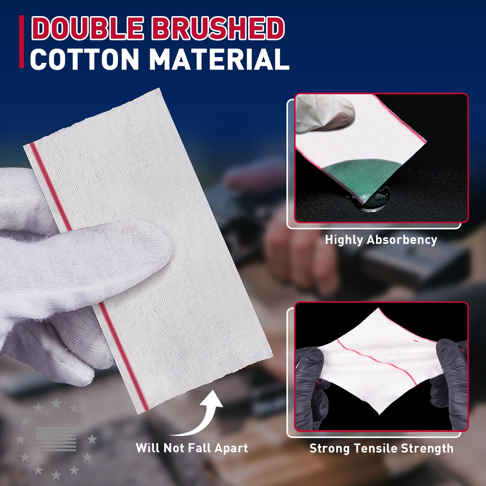 - 【Highly Absorbent】Crafted from premium 100% cotton patches, these gun cleaning cloths are exceptionally absorbent.