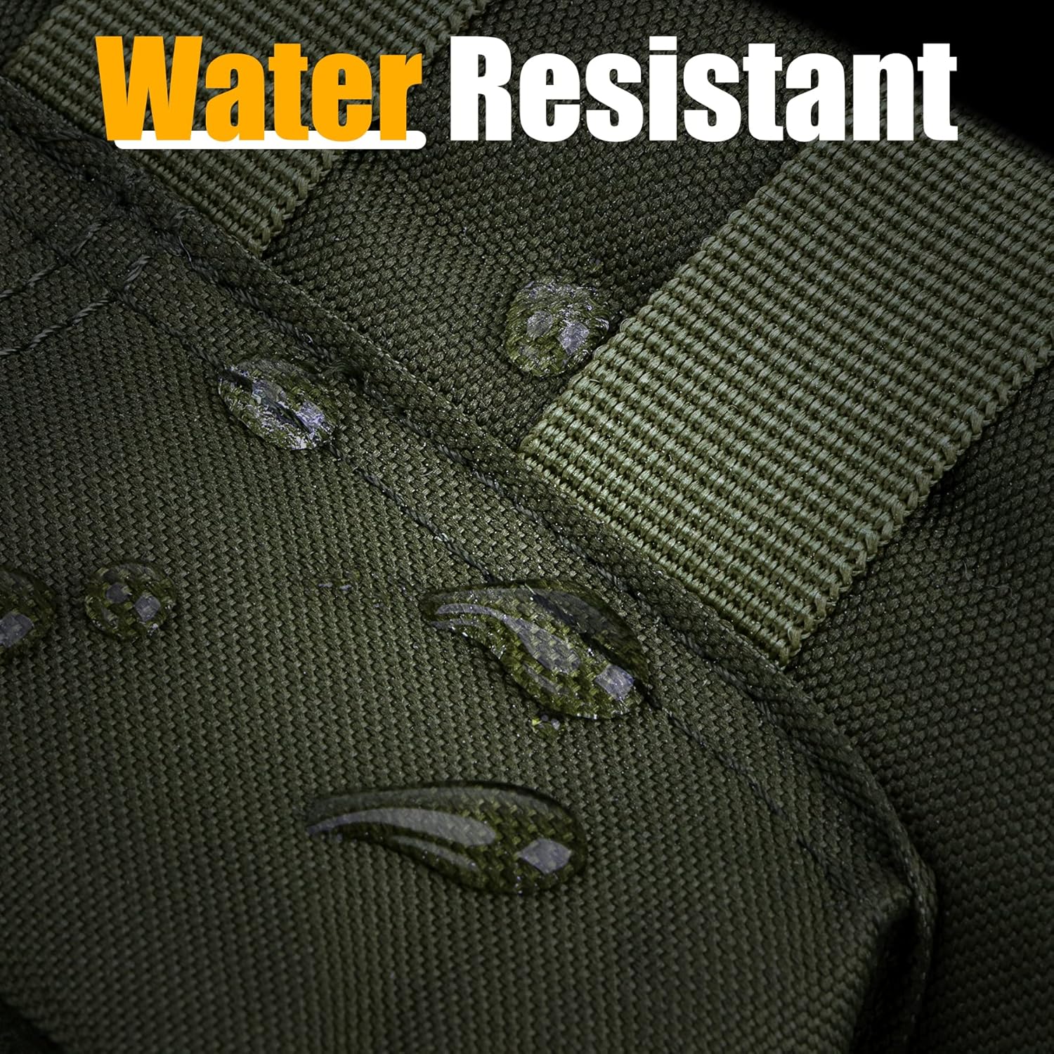 - Can be attached to any molle webbing vest bag, duty belt or backpack. MOLLE attachment can be attached on top and the side pouch.