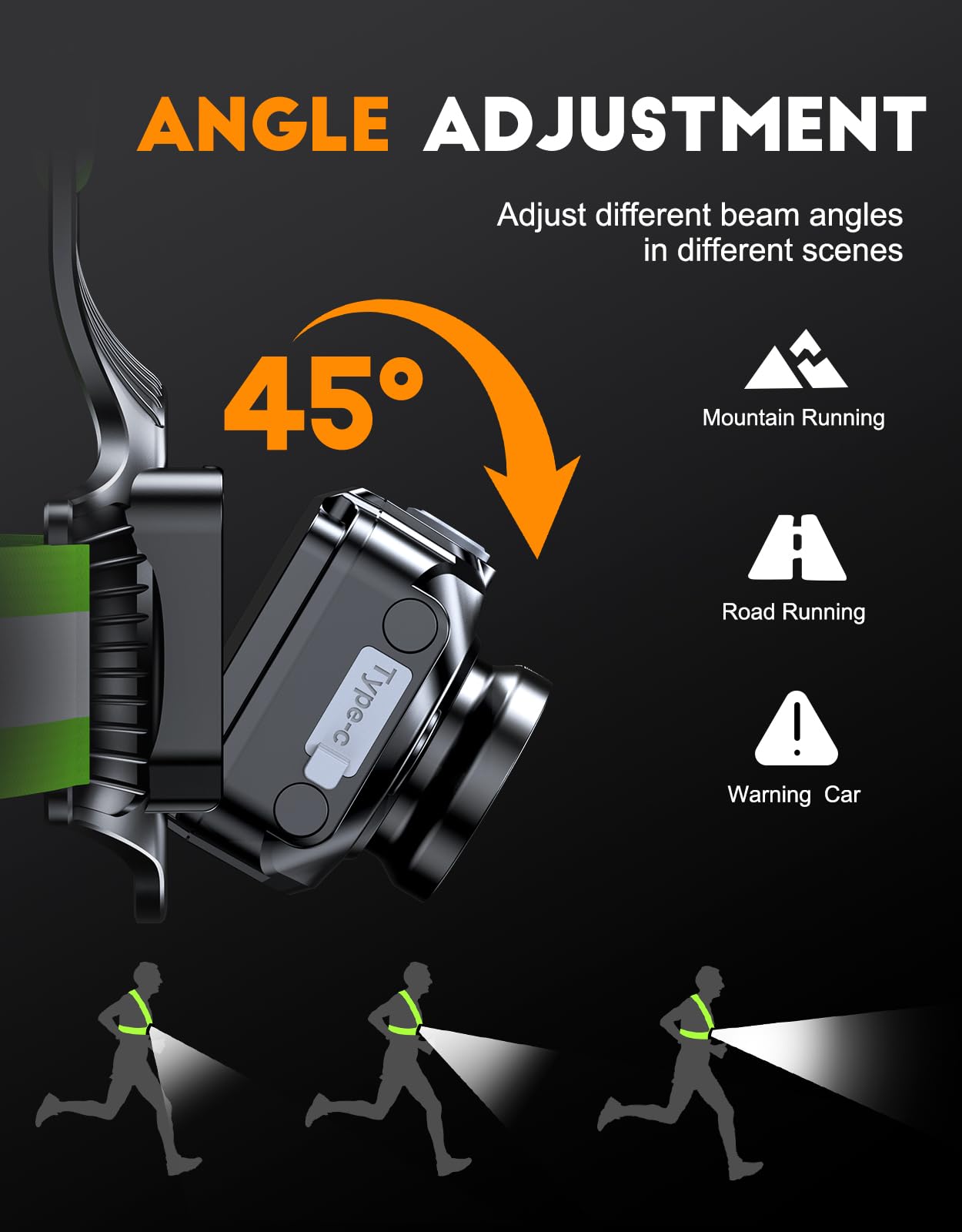 - 【High Brightness & Adjustable Angle】This running lights features a 60° adjustable beam design with a powerful 500-lumen LED that effectively illuminates the ground and slopes within 90 meters. It significantly reduces shadow areas on the ground and avoids road hazards, ensuring your safety in the dark.