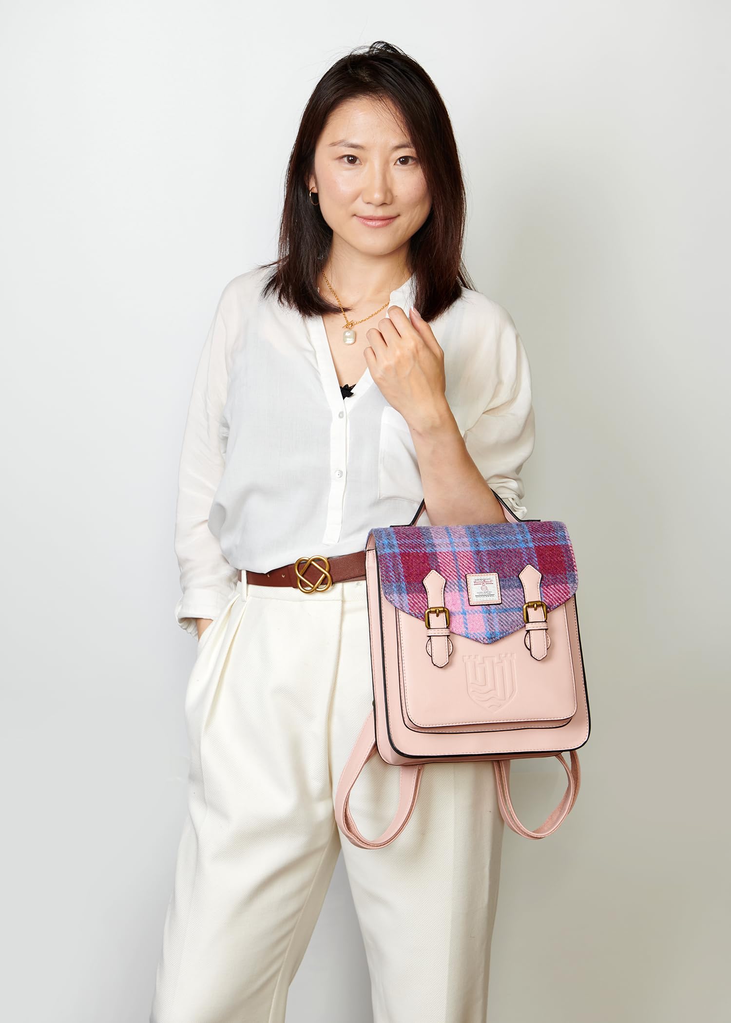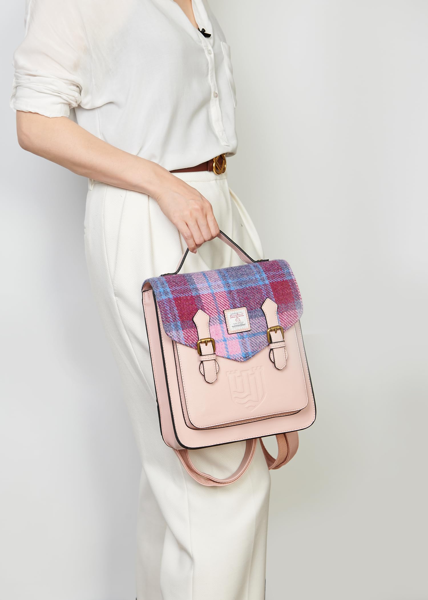 Named after one of Edinburgh's many landmarks, Calton Hill. Also available in a satchel! - PU body with Harris Tweed cloth front panel - Adjustable shoulder straps - Inner and outer pockets L:24cm x W:11cm x H:29cm