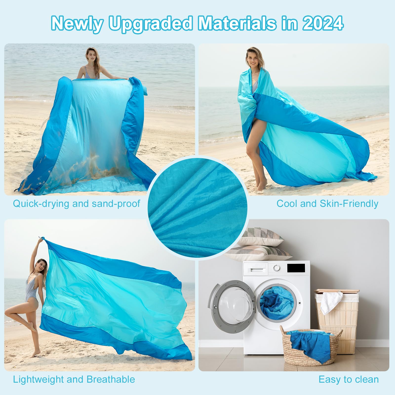 ISOPHO Beach Blanket Sand Proof, Ripstop Nylon Picnic Blankets, Extra Large Beach Mat Quick Drying, Lightweight & Durable, for Outdoor Activities, Travel, Beach Picnic, 106 x 83 Inches, Blue