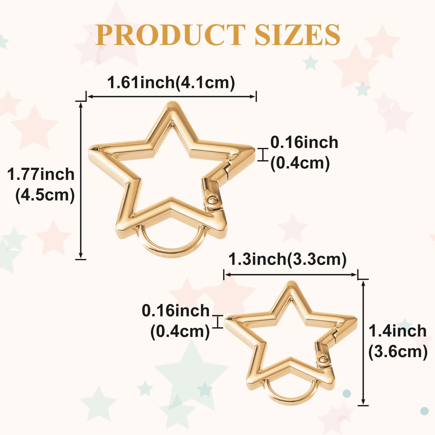 - Package Contains: You will receive 1 pcs zinc alloy star shaped carabiner. The bigger size is 1.61 x 1.77 in (4.1 x 4.5 cm), the smaller size is 1.3 x 1.4 in (3.3 x 3.6 cm), and the thickness is 0.16 in (0.4 cm)