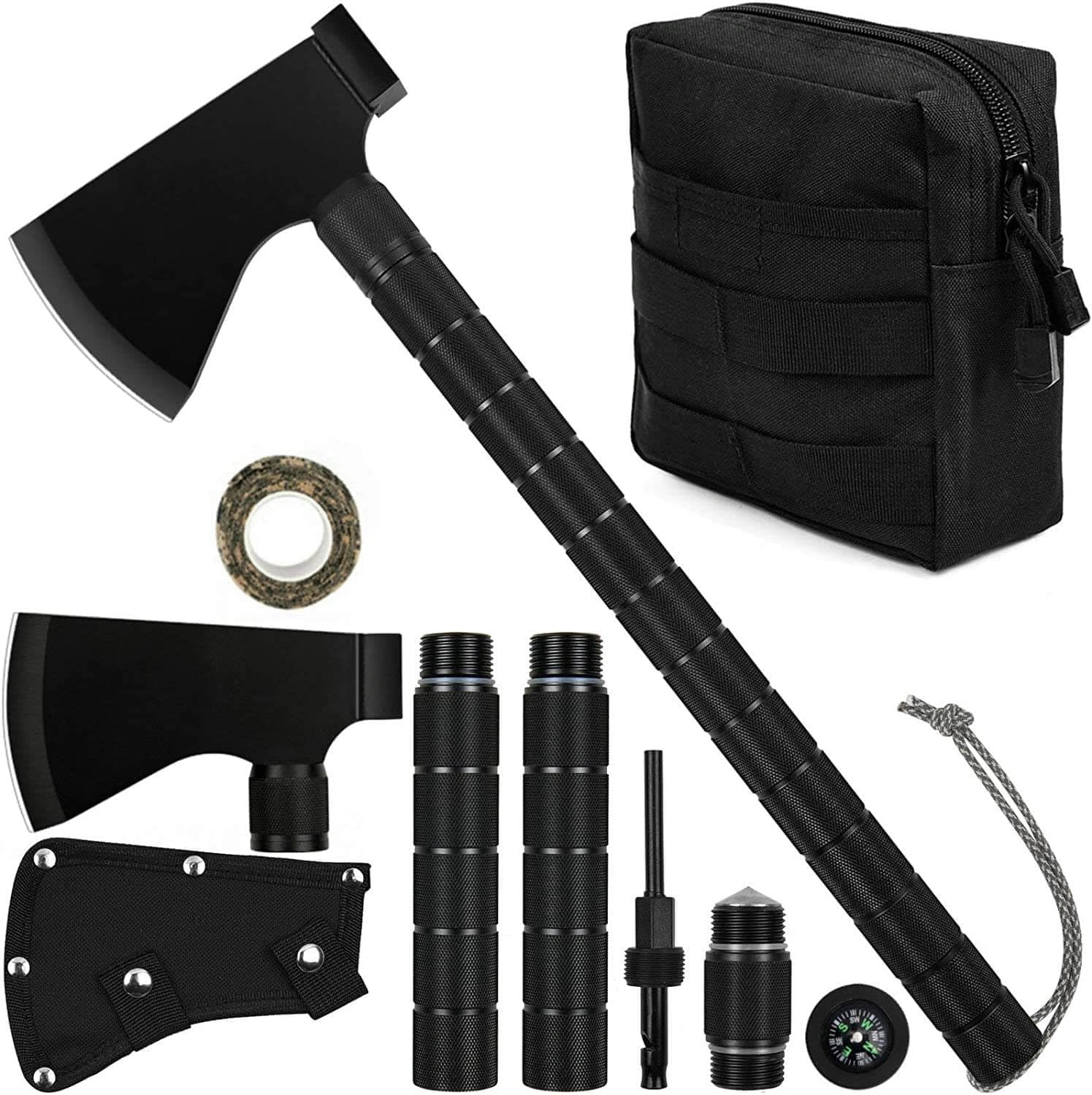 iunio Camping Axe, Hatchet with Sheath, Multi-Tool, Camp Ax, Survival Gear, Folding Portable Tools, for Hiking, Backpacking, Emergency, Hunting, Outdoor