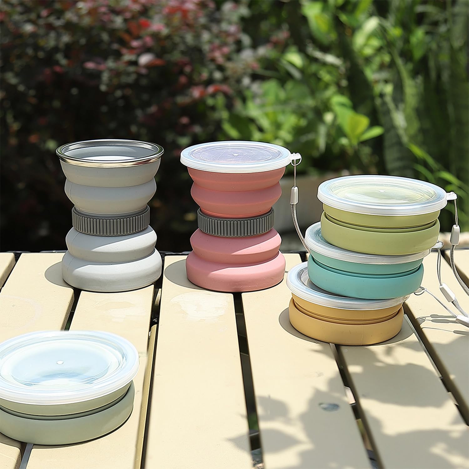IYYI Collapsible Travel Cup, 10.5oz Foldable Cup with Lid, Silicone Folding Cups for Camping, Hiking, Outdoors, Travel, Portable Camping Cup Set (Green+Sage)