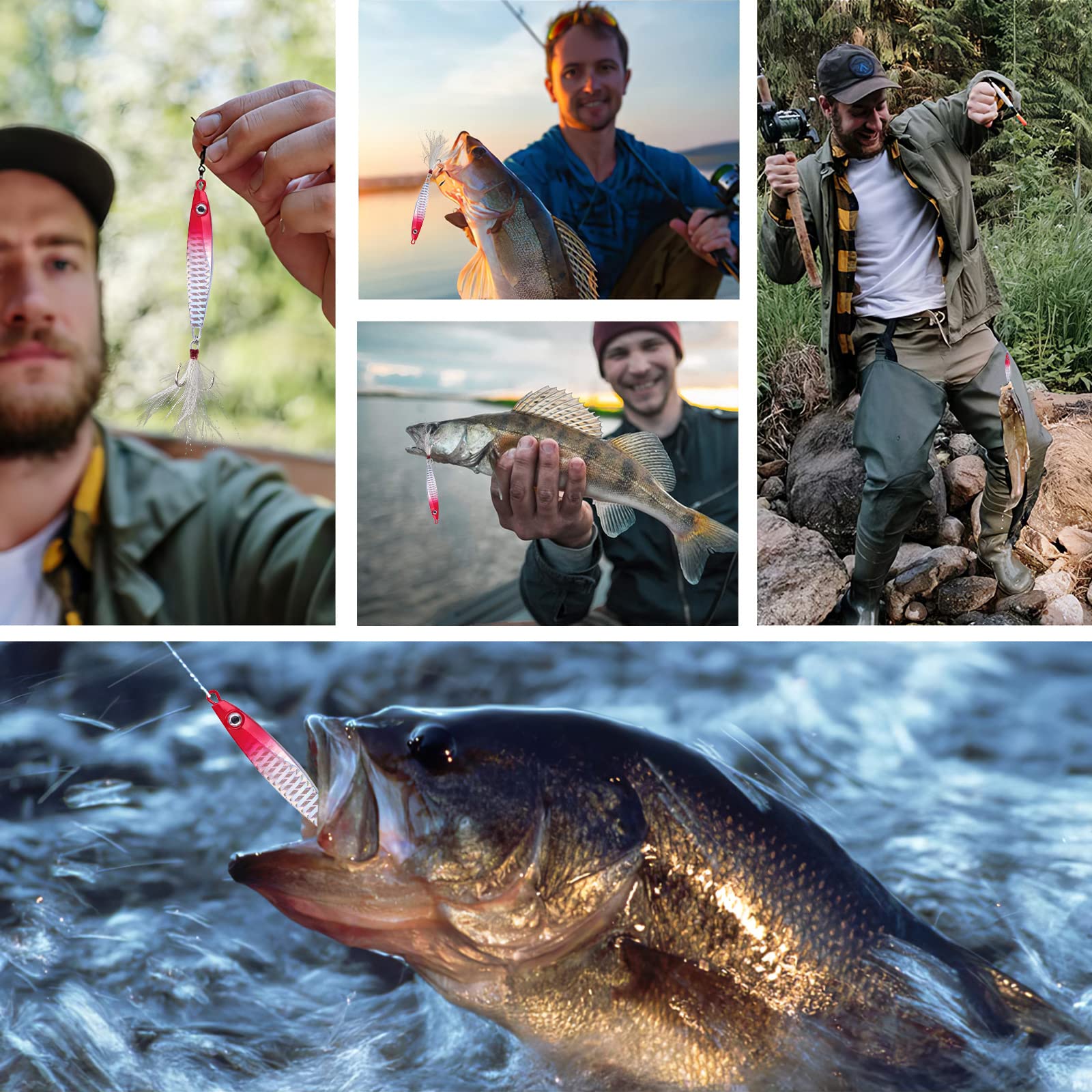 - Equipped with feather jigging and rustproof treble hooks, more powerful and durable. The high quality hook of bass is sharp enough to provide the best penetration. It’s trident crochet hook makes fish hard to escape.