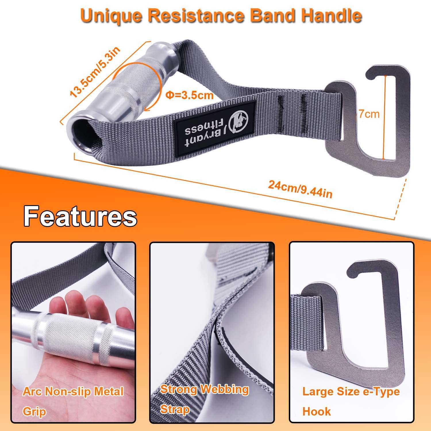 - Unique hook design: The resistance band bar, handle, and door anchor are all designed with a unique E-shaped hook that makes them quick and convenient to use. The handle and door anchor are also made of high-quality materials, ensuring stability and reliability.