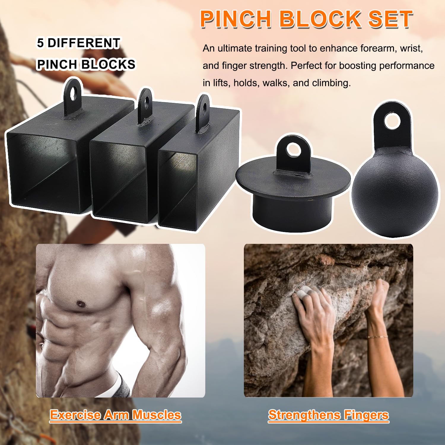 - Elevate Your Grip Strength: Engineered for rock climbing enthusiasts, forearm and finger exercisers, and strength training aficionados. This premium set designed to enhance your workout routine with a focus on forearm, finger strength, and overall power grip enhancement. From pinch plate curls and pinch block lunges to pinch grip deadlifts, the variety of exercises targets multiple muscle groups for a holistic and effective strength training experience.